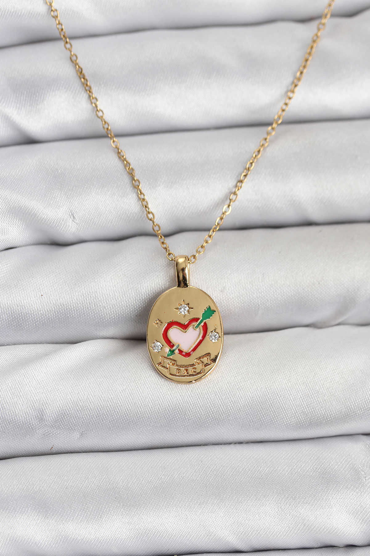 316L Çelik Zincir Gold Renk Kalp Figürlü Kadın Kolye