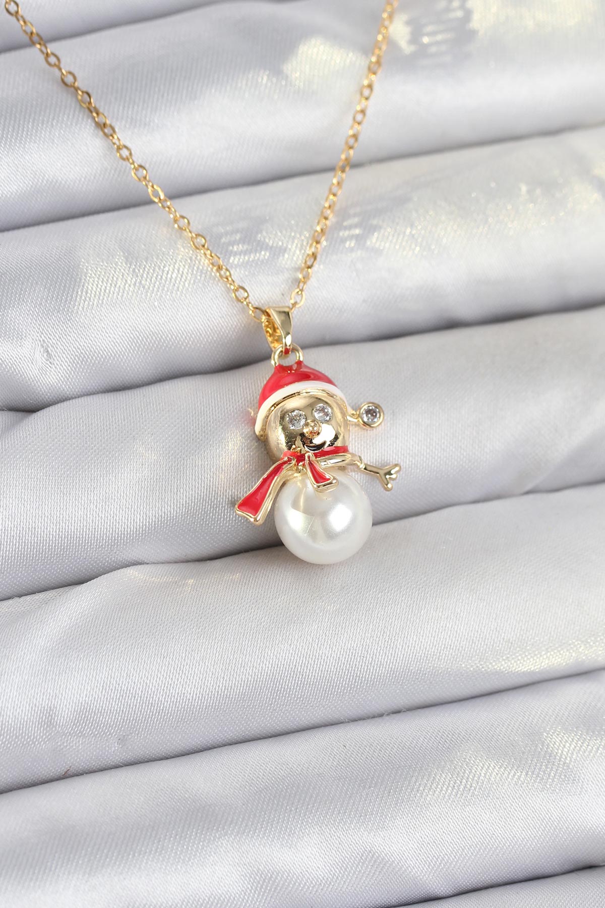 316L Çelik Zincir Gold Renk Kardan Adam Model Yılbaşı Temalı Kadın Kolye
