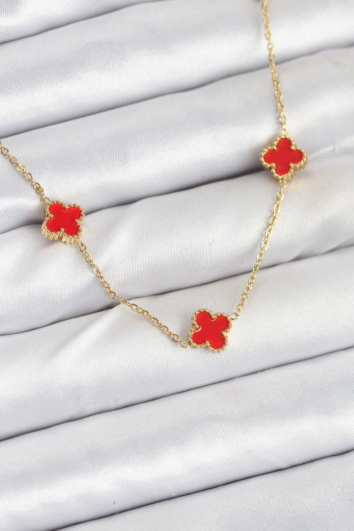 316L Çelik Zincir Gold Renk Kırmızı Baby Boy Yonca Kadın Kolye
