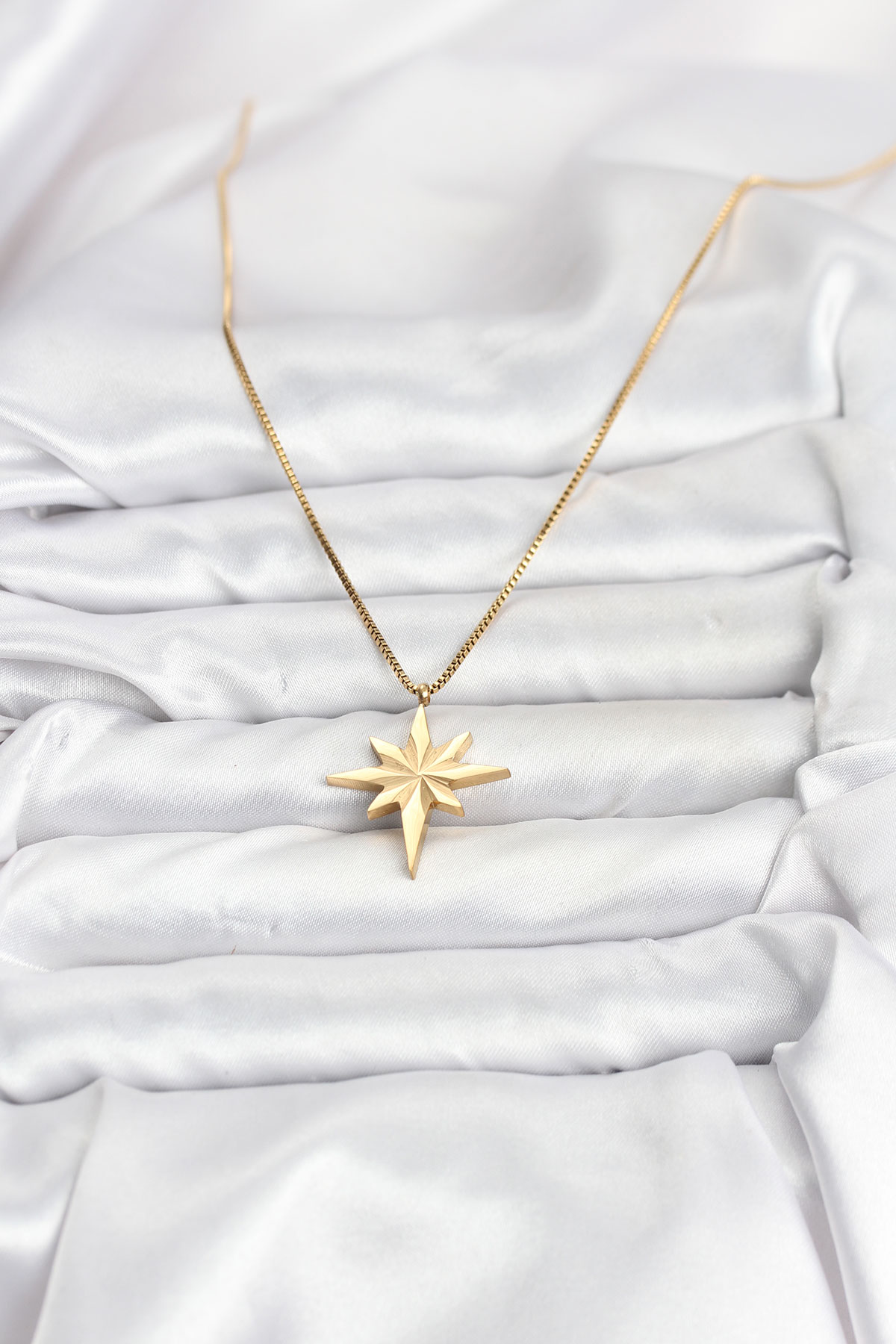 316L Çelik Zincir Gold Renk Kutup Yıldızı Model 60 cm Zincir Kadın Kolye
