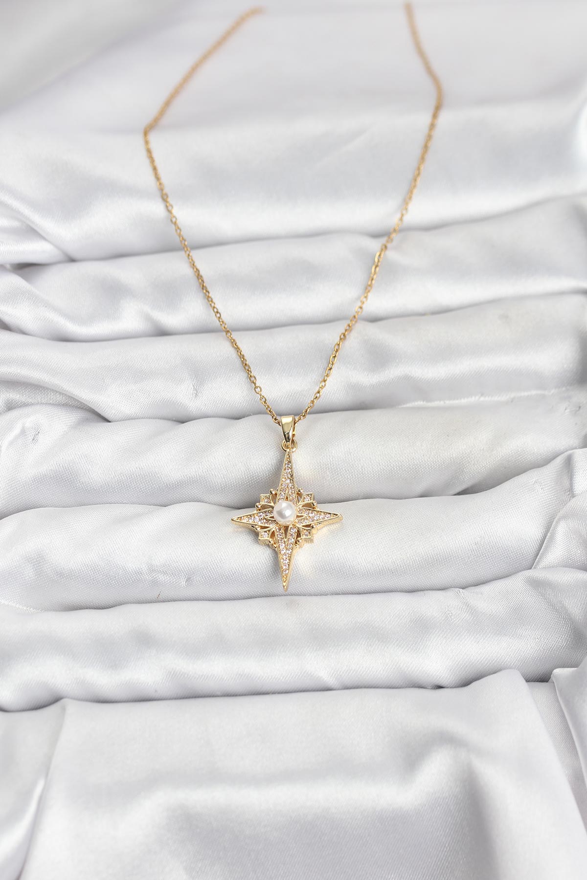 316L Çelik Zincir Gold Renk Kutup Yıldızı Model Zirkon Taşlı Kadın Kolye