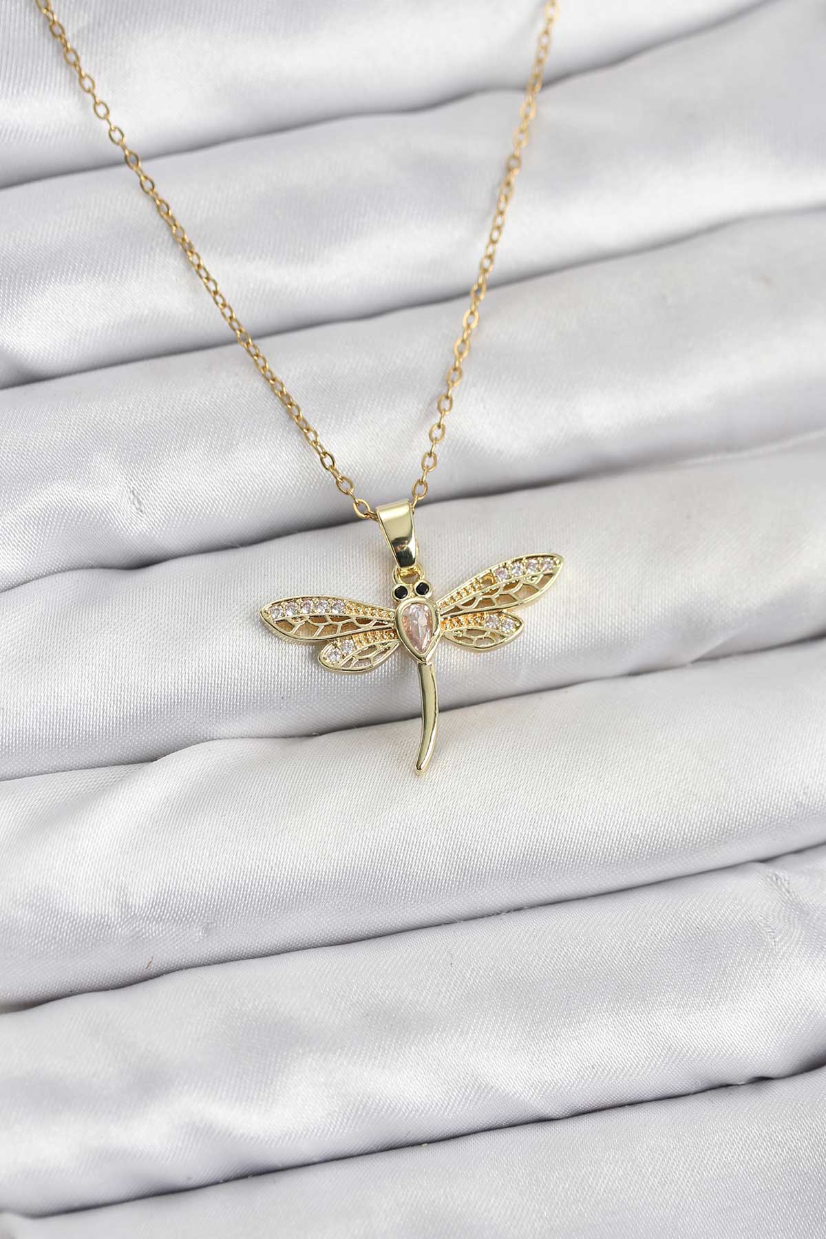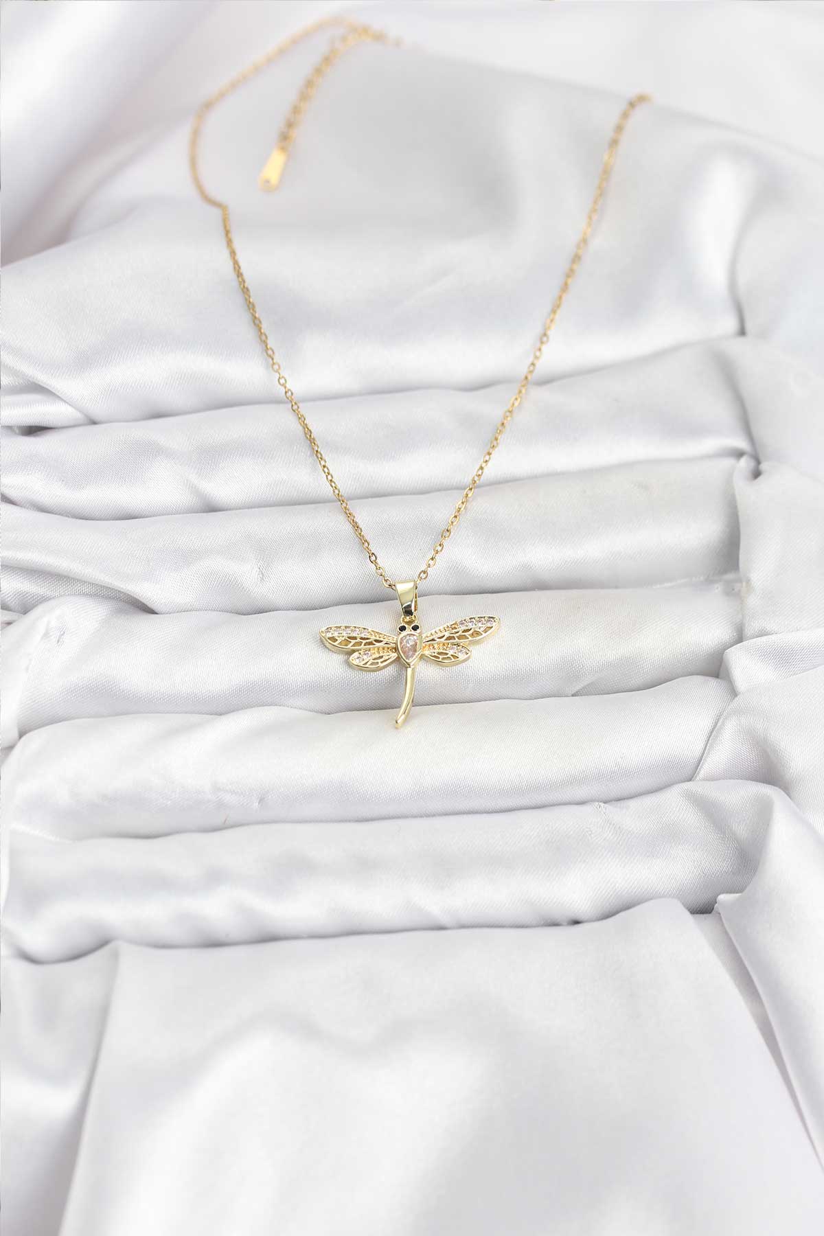 316L Çelik Zincir Gold Renk Yusufçuk Model Kadın Kolye
