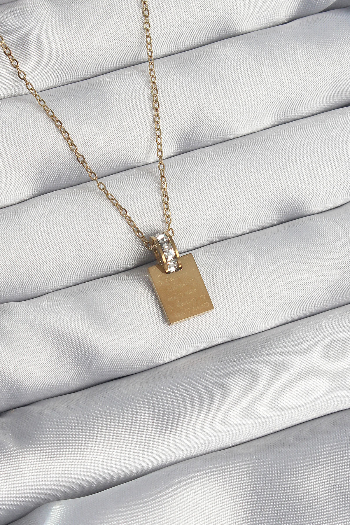 316L Çelik Zincir Gold Renk Zirkon Taşlı Aşk Mektubu Kolye