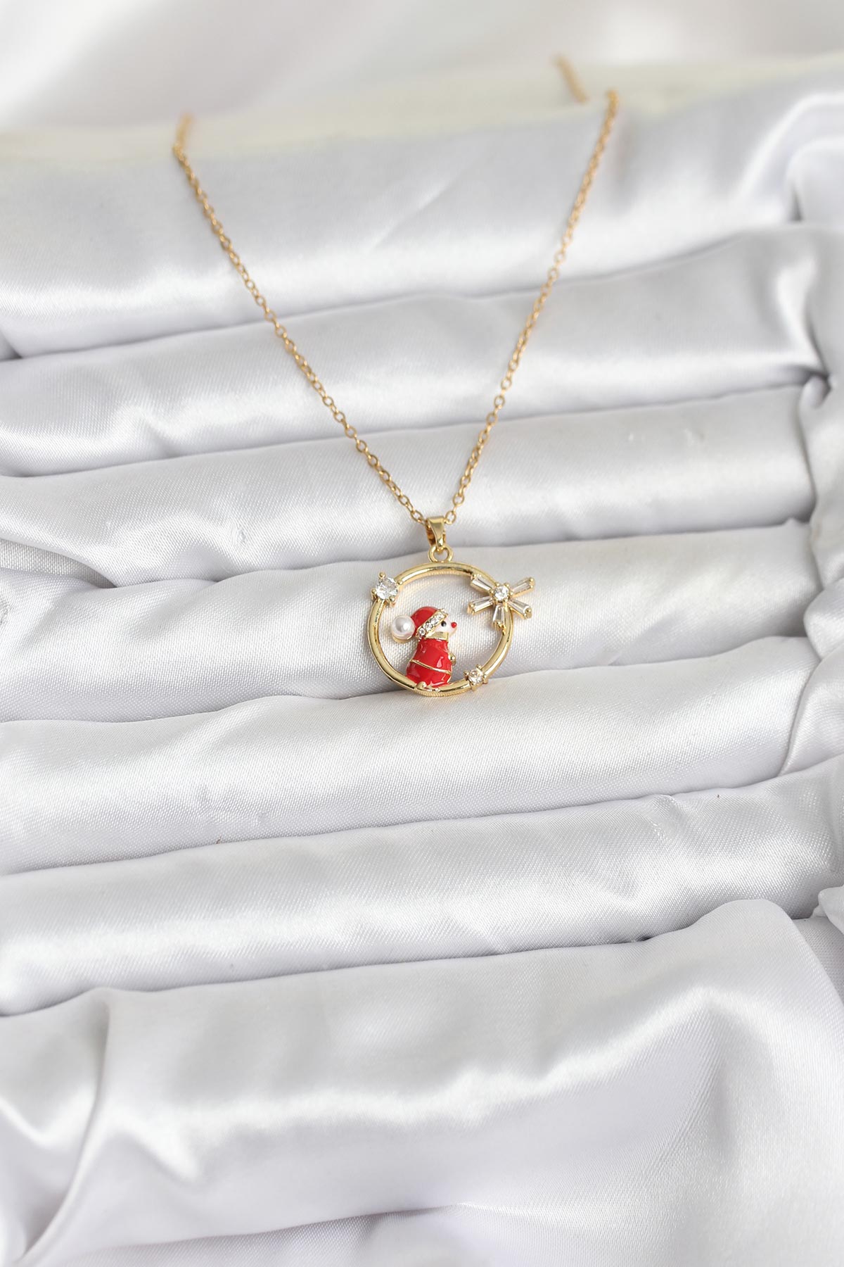316L Çelik Zincir Gold Zirkon Taşlı Yılbaşı Tema Kadın Kolye