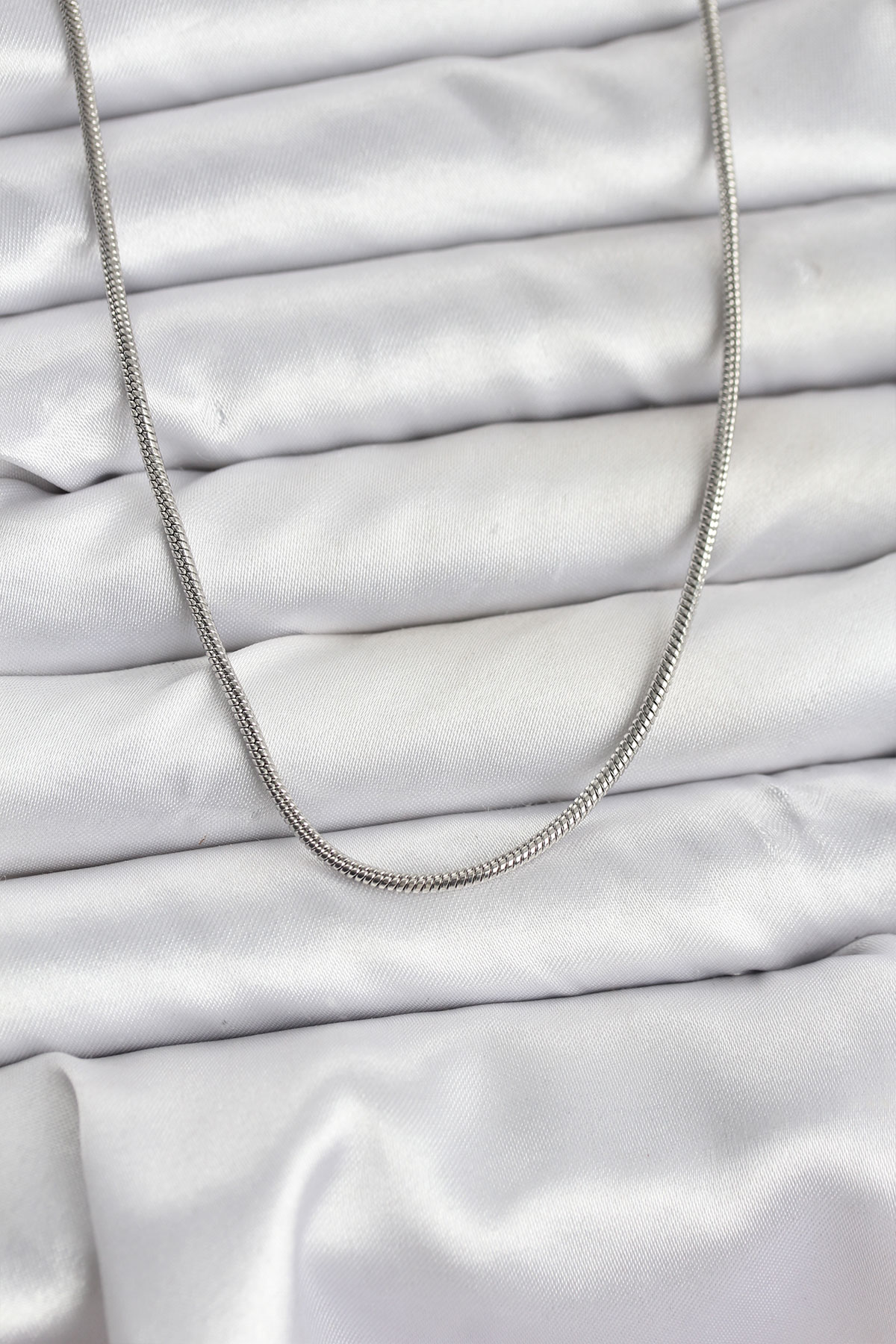 316L Çelik Zincir Gümüş Renk 60 cm Yılan Zincir Kadın Kolye