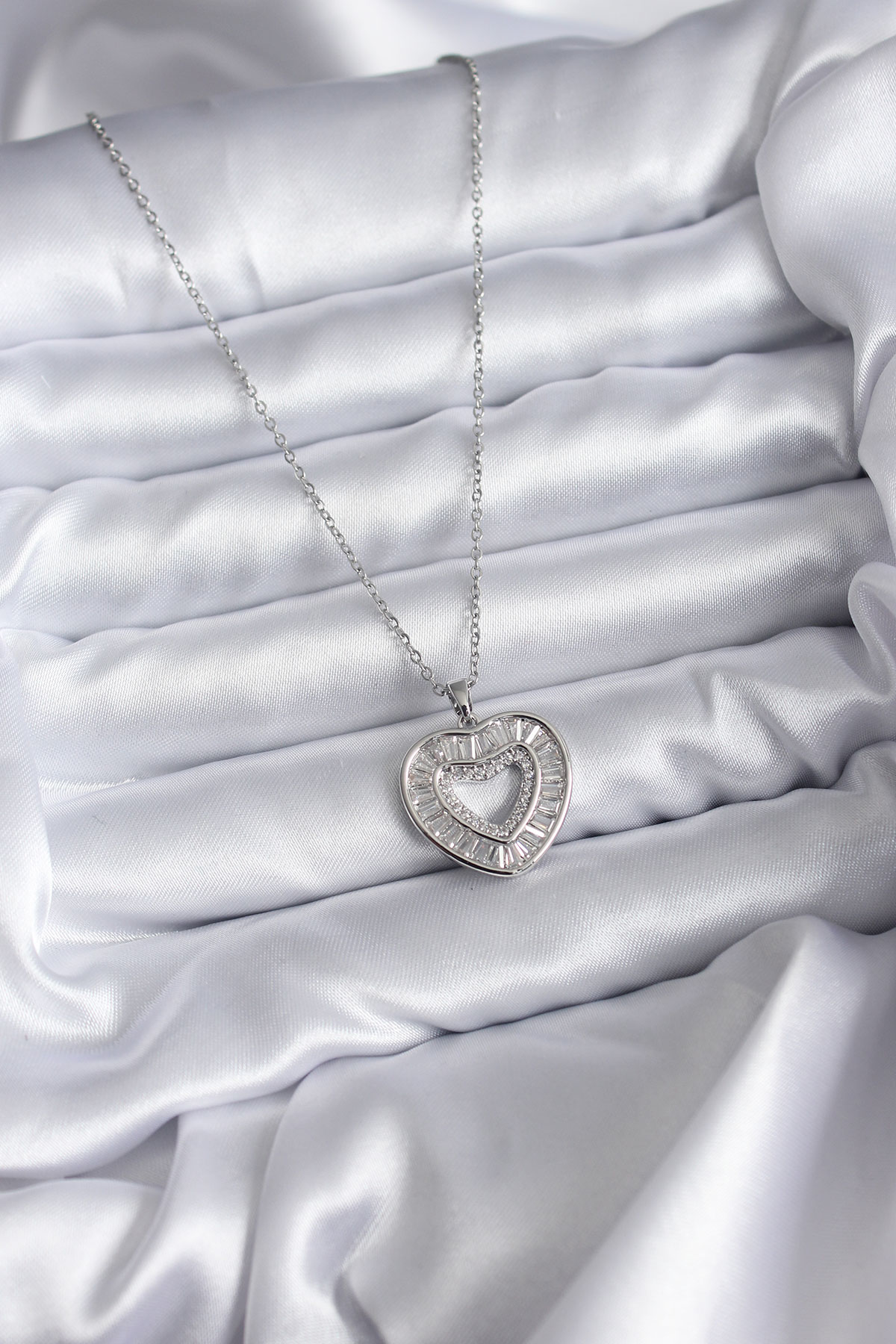 316L Çelik Zincir Gümüş Renk Baget Zirkon Taşlı Kadın Kolye