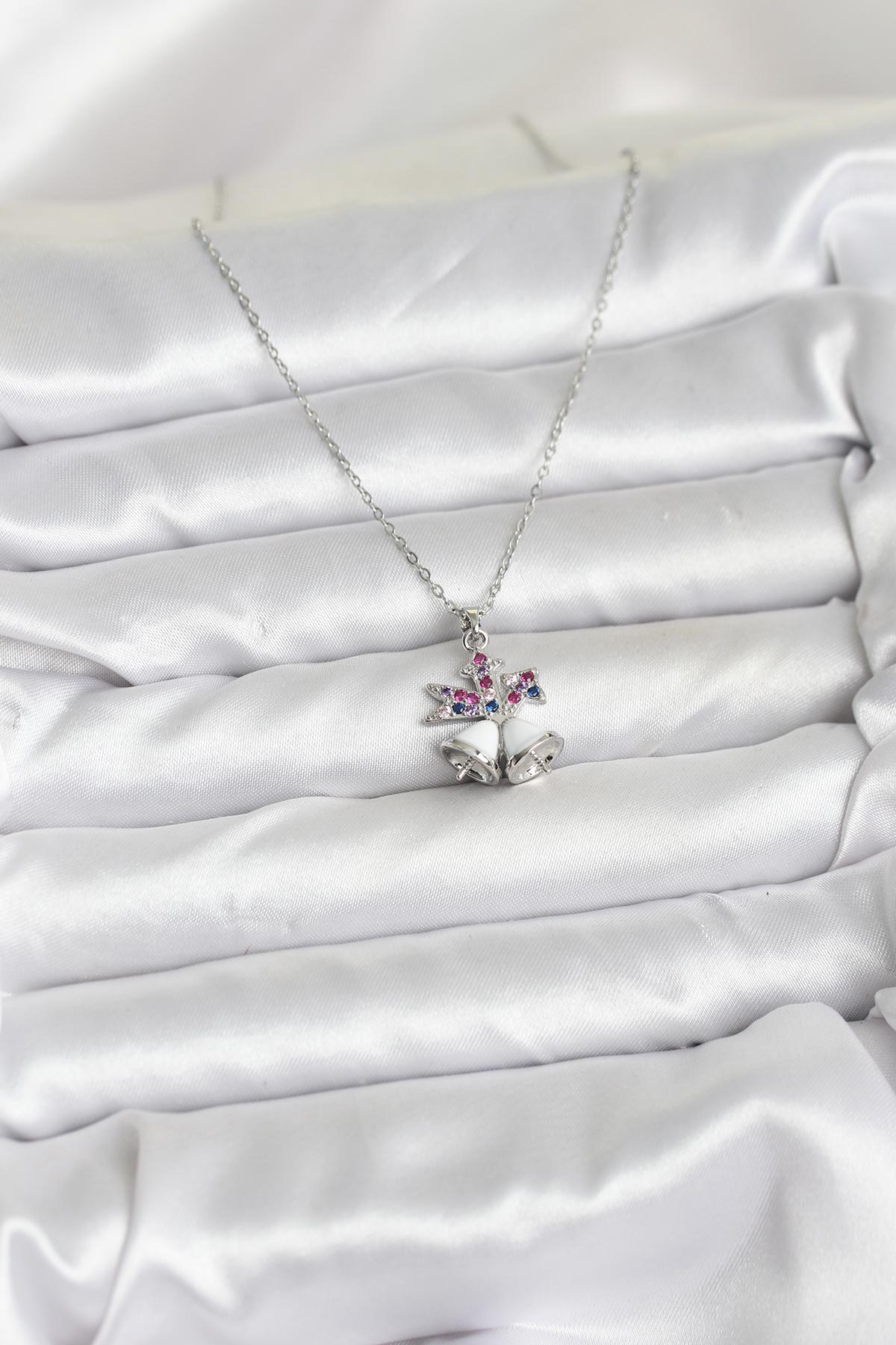 316L Çelik Zincir Gümüş Renk Chirtsmas Bell Model Yılbaşı Temalı Kadın Kolye
