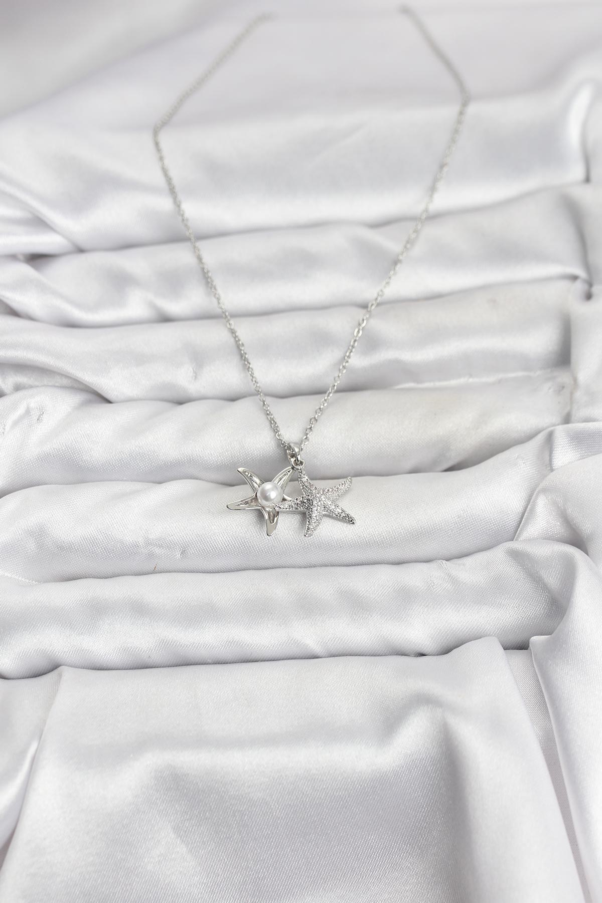316L Çelik Zincir Gümüş Renk Deniz Yıldızı Model Zirkon Taşlı Kadın Kolye