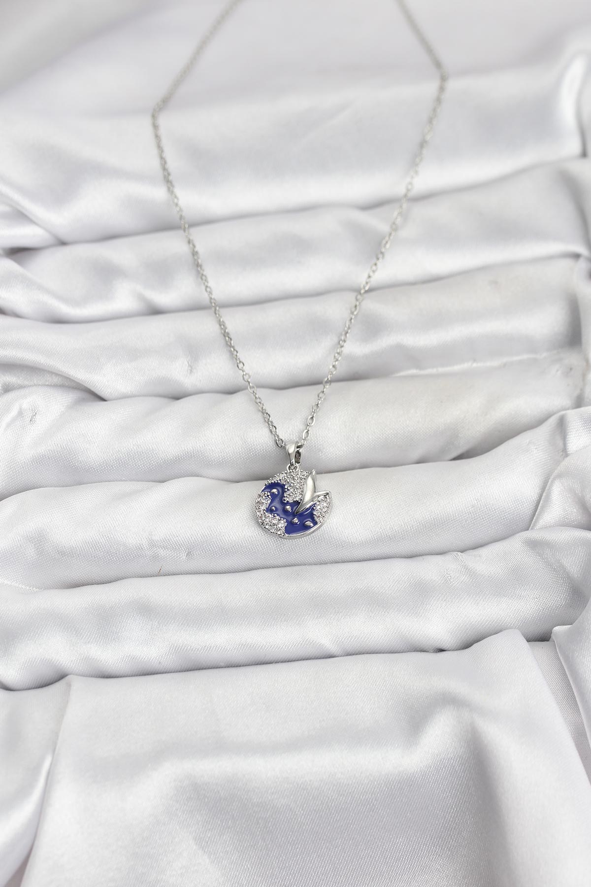 316L Çelik Zincir Gümüş Renk Gece Model Zirkon Taşlı Kadın Kolye