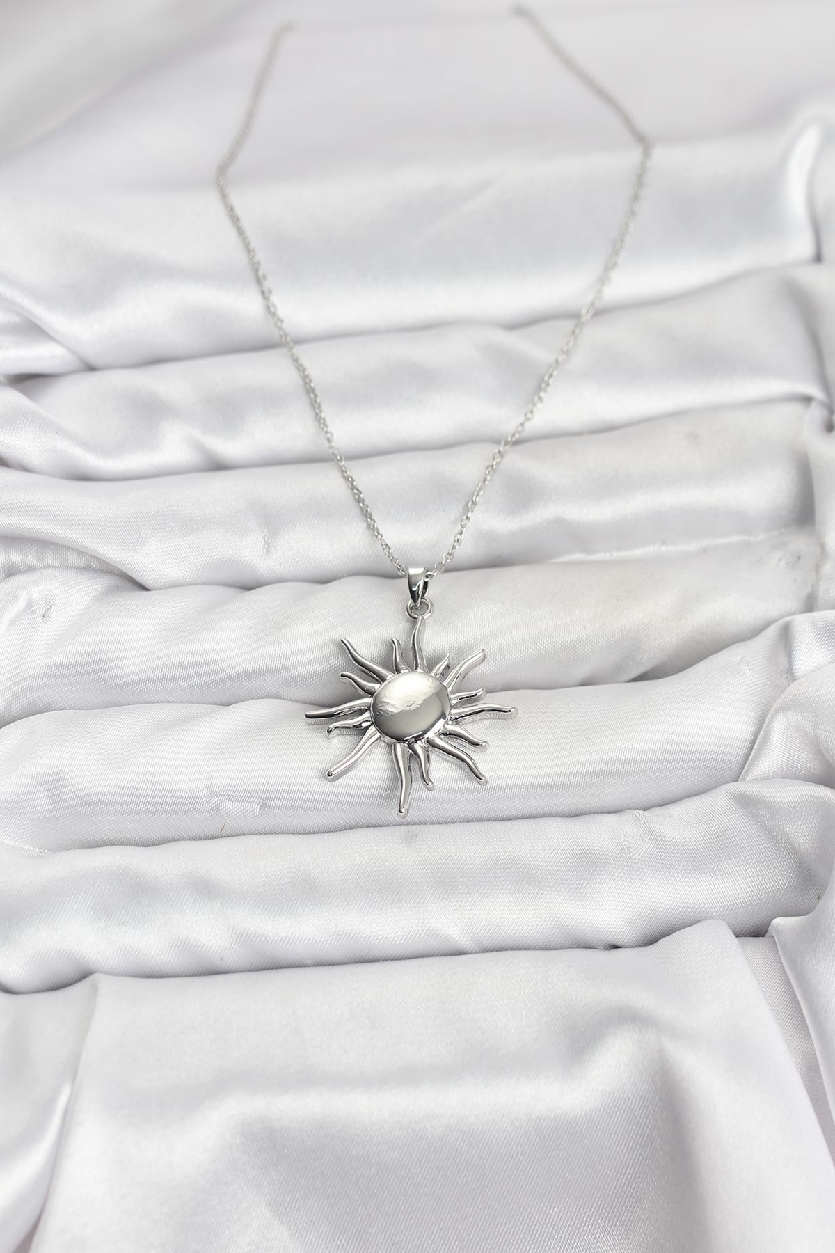 316L Çelik Zincir Gümüş Renk Güneş Model Kadın Kolye