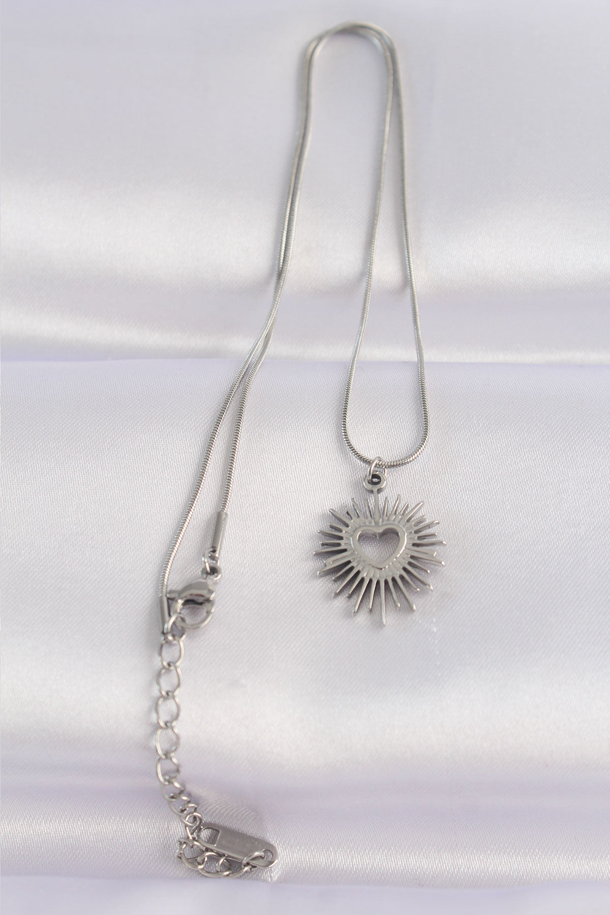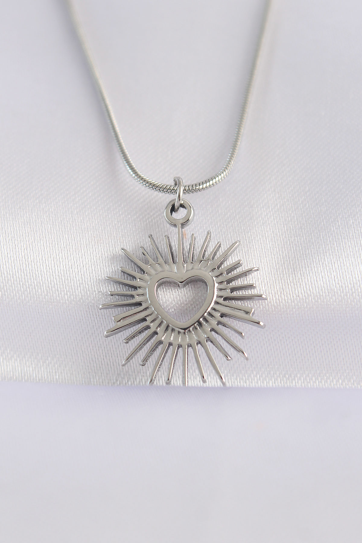 316L Çelik Zincir Gümüş Renk Kalp Güneşi Tasarımlı Kolye
