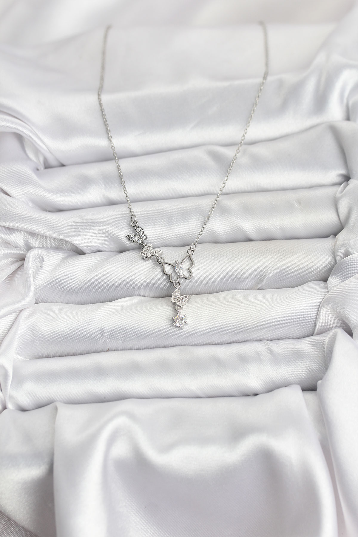 316L Çelik Zincir Gümüş Renk Kelebek Model Kadın Kolye
