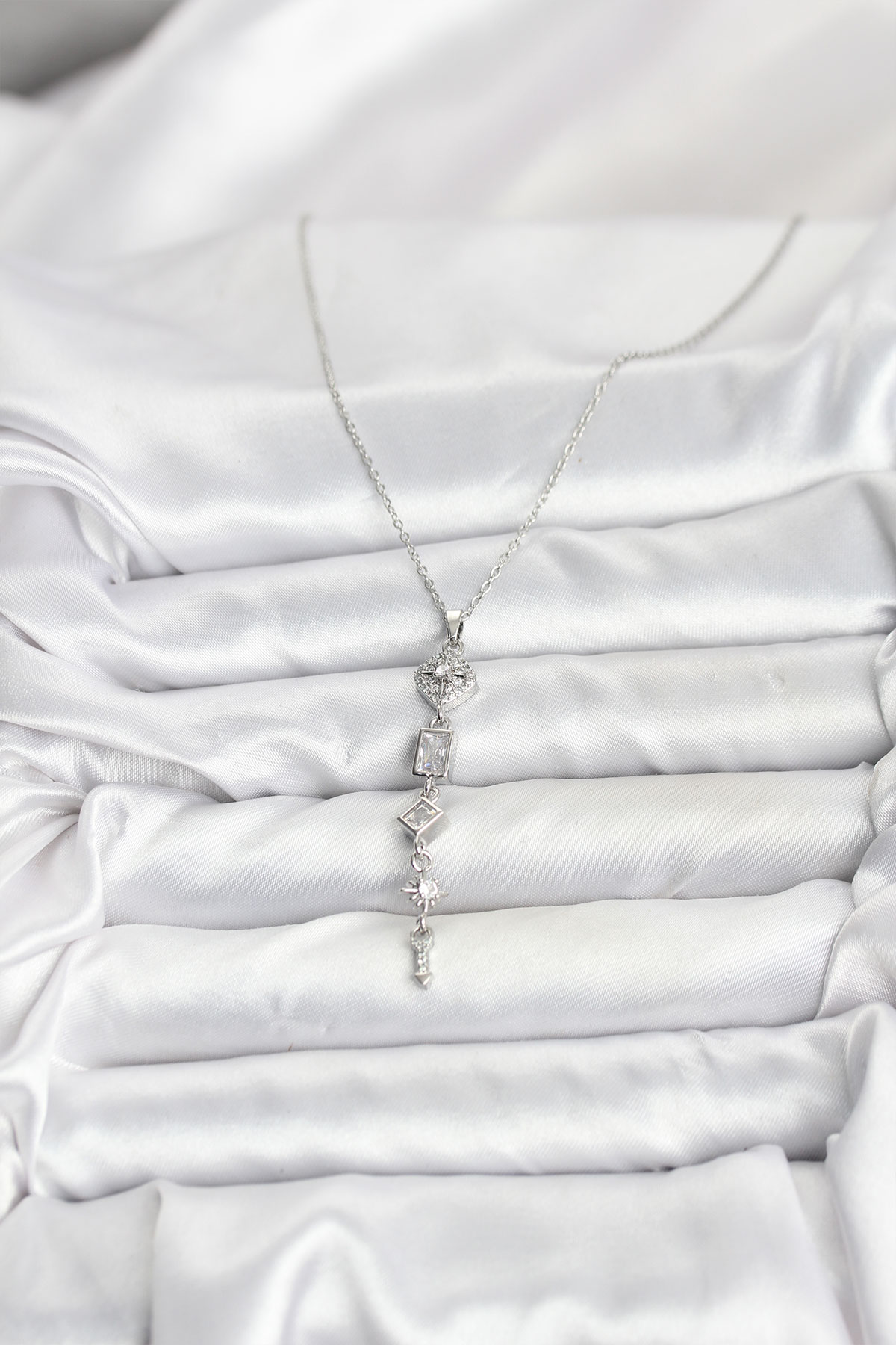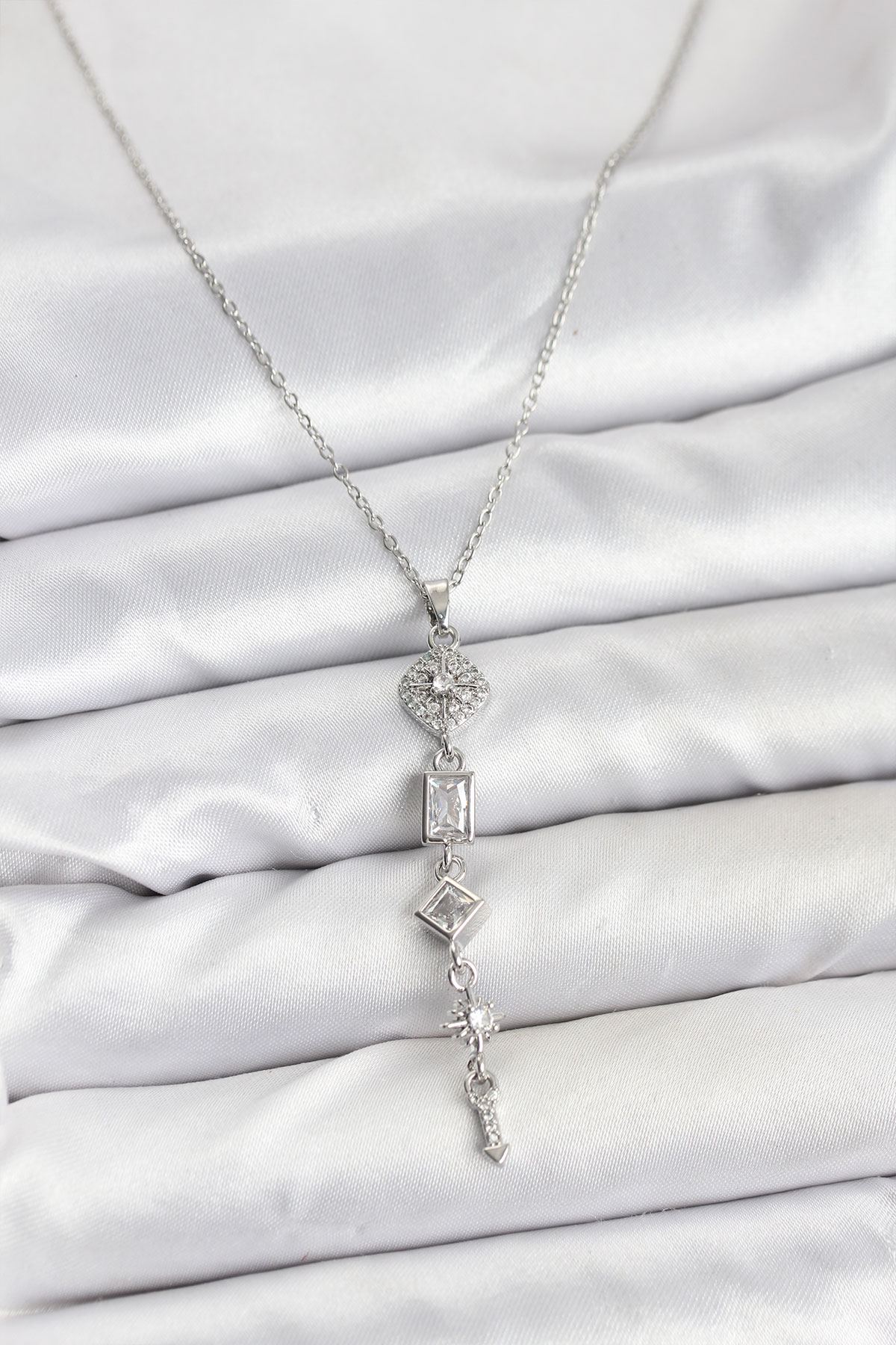 316L Çelik Zincir Gümüş Renk Kutup Yıldızı Enerji Model Kadın Y Kolye