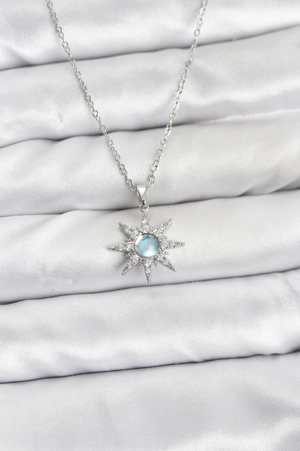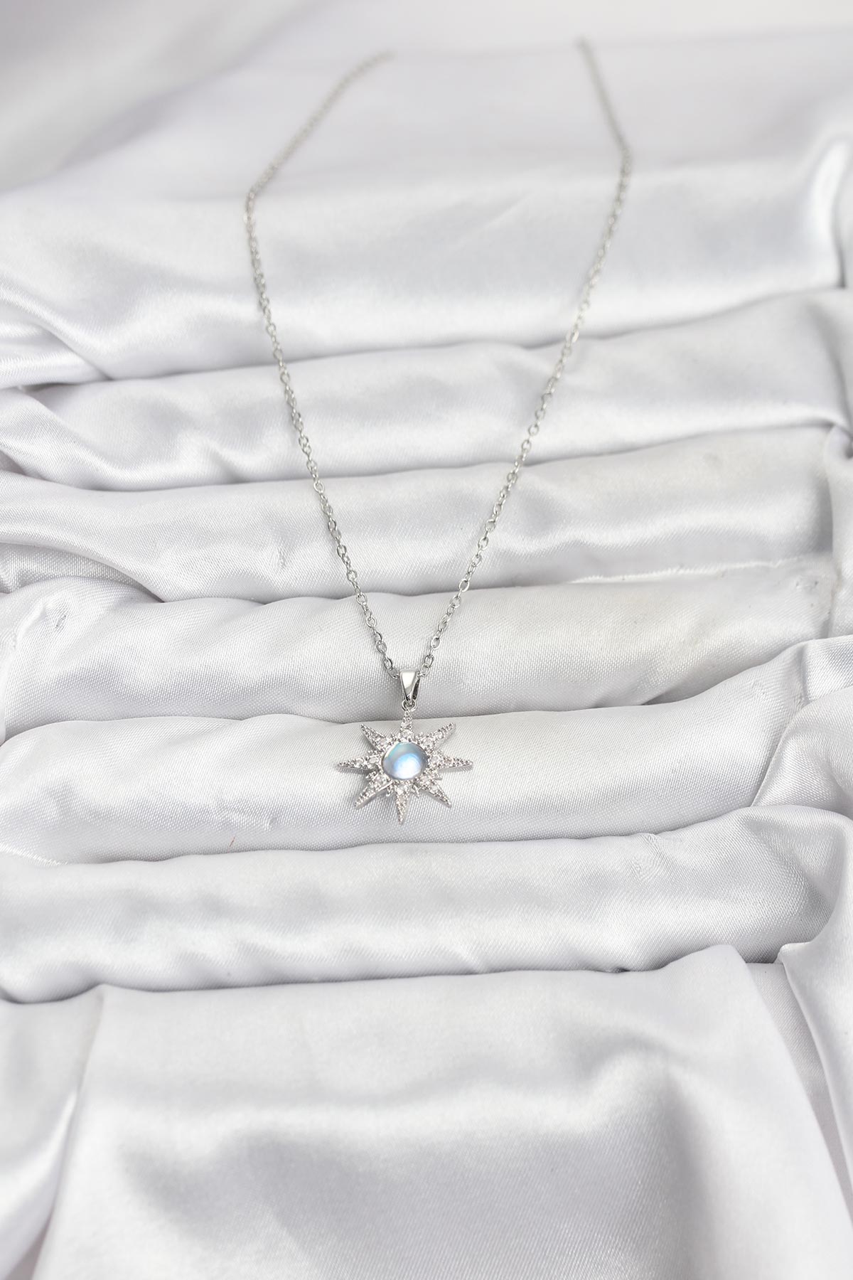 316L Çelik Zincir Gümüş Renk Kutup Yıldızı Model Zirkon Taşlı Kadın Kolye
