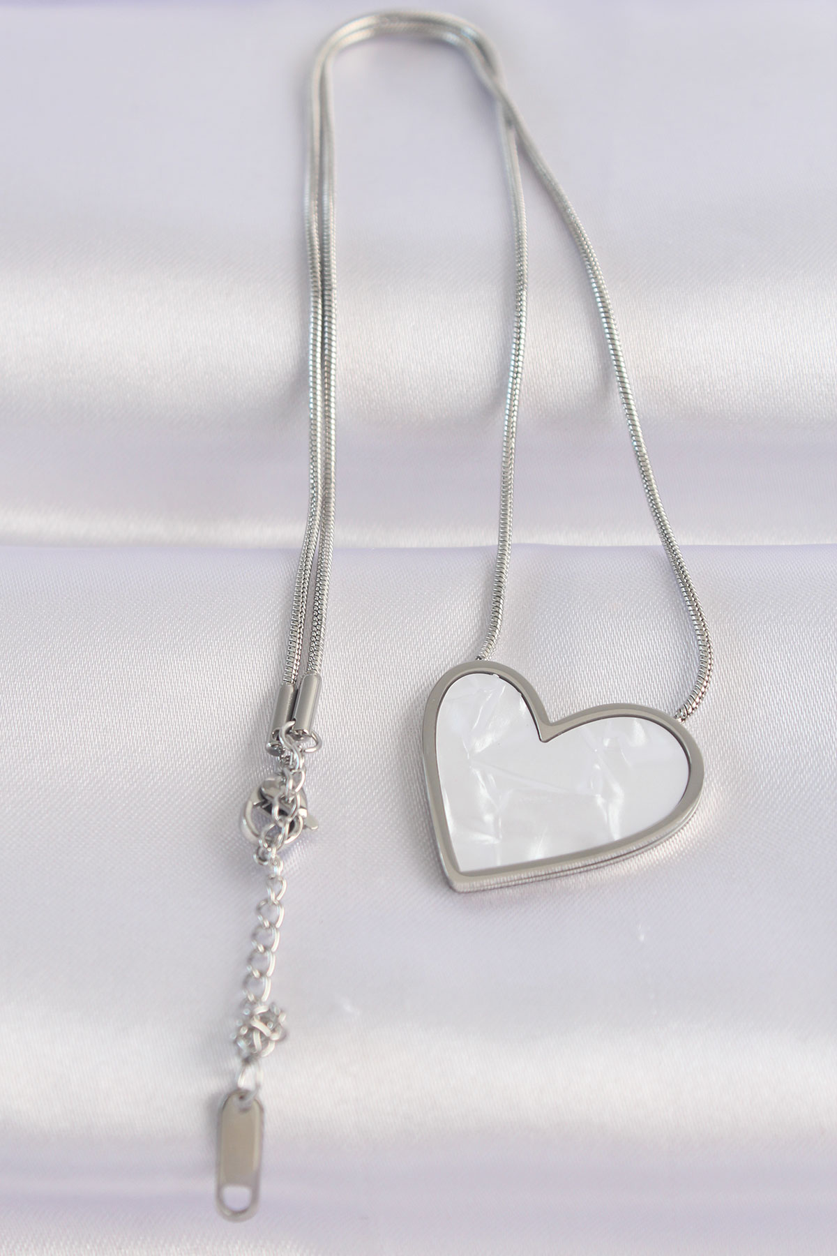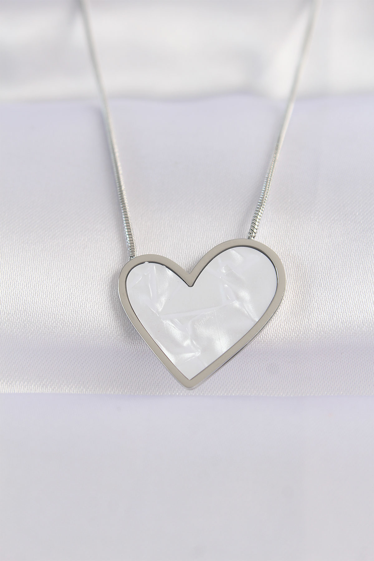 316L Çelik Zincir Gümüş Renk Mermer Desenli Kalp Kolye