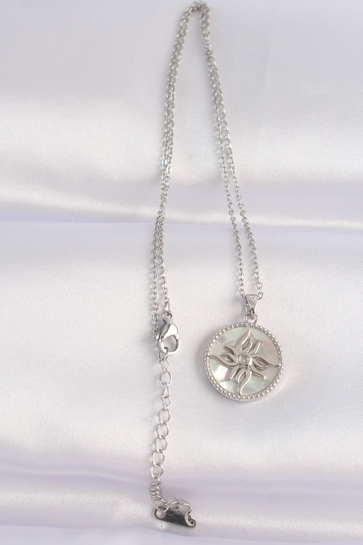 316L Çelik Zincir Gümüş Renk Oval Tasarımlı Güneş Kolye