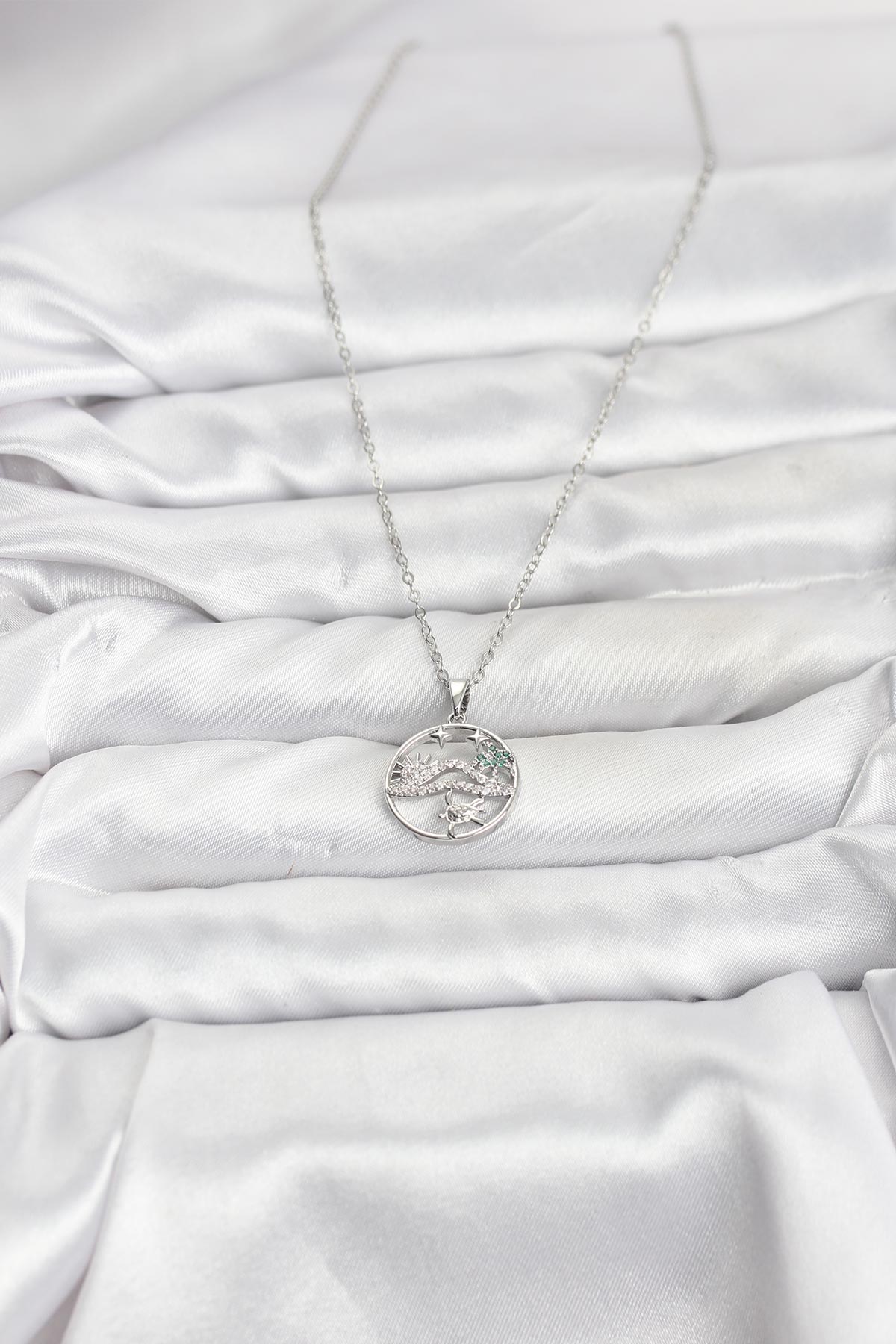 316L Çelik Zincir Gümüş Renk Şans Kolyesi Model Zirkon Taşlı Kadın Kolye