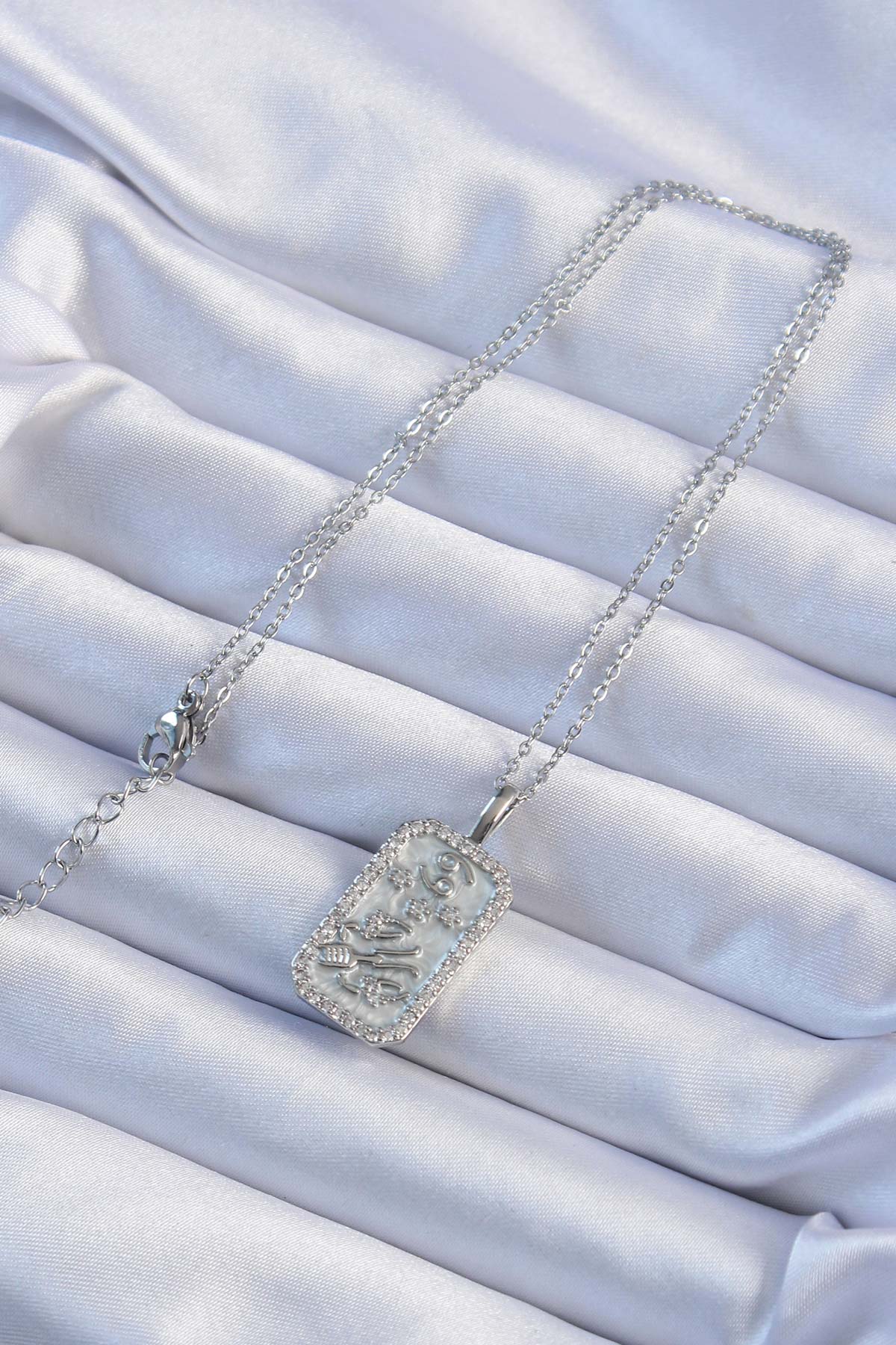 316L Çelik Zincir Gümüş Renk Zirkon Taşlı Çerçeveli Tarot Kolye