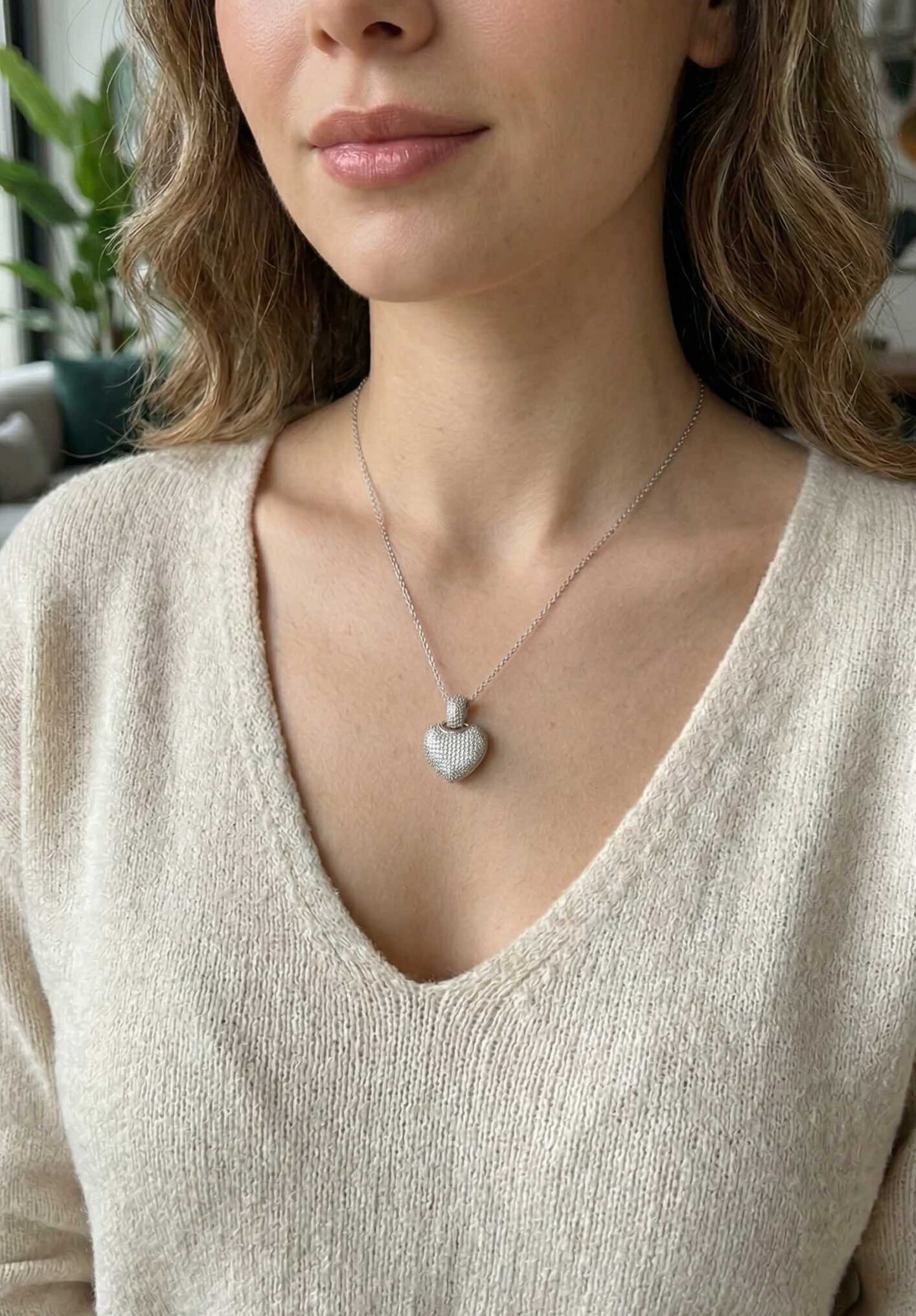 316L Çelik Zincir Gümüş Renk Zirkon Taşlı Kalpli Kadın Kolye
