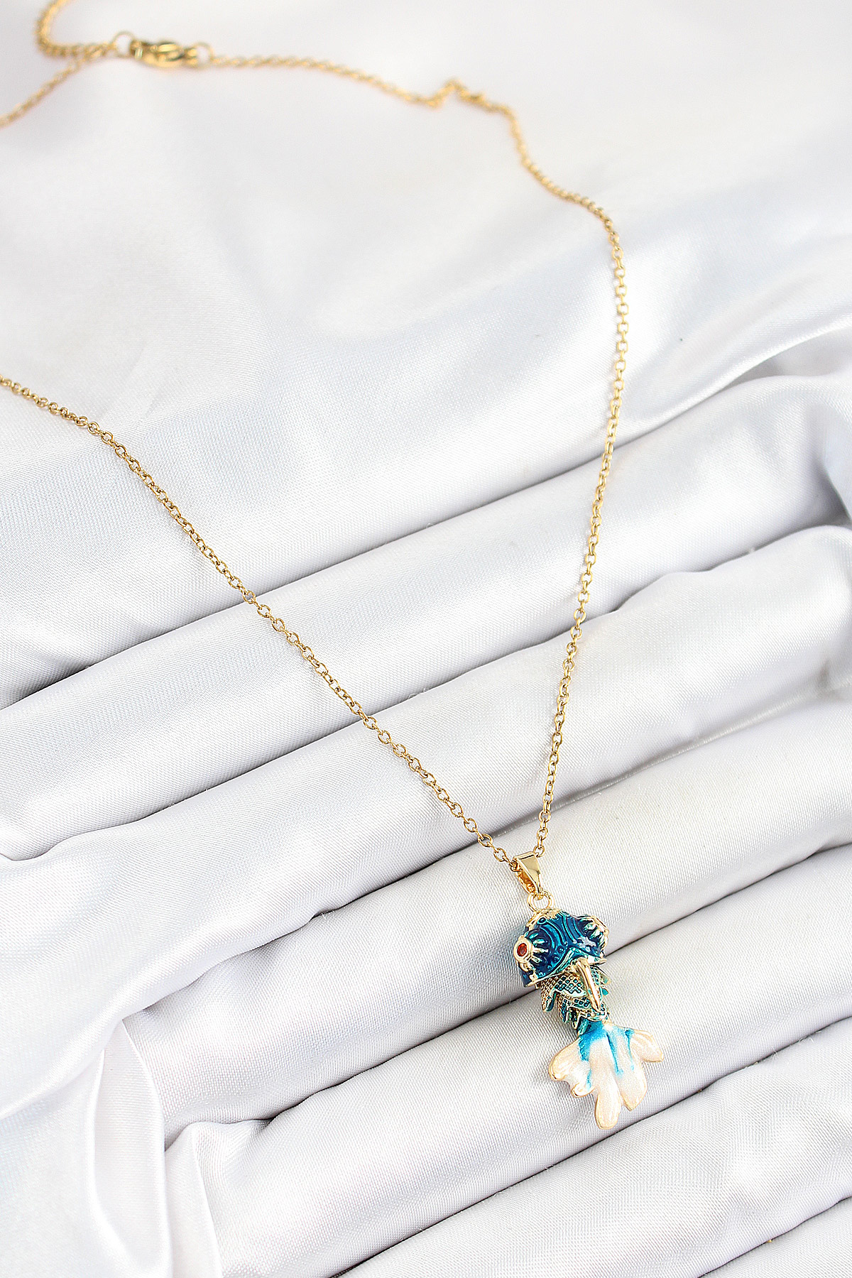316L Çelik Zincir Mavi Balık Model Gold Renk Kadın Kolye