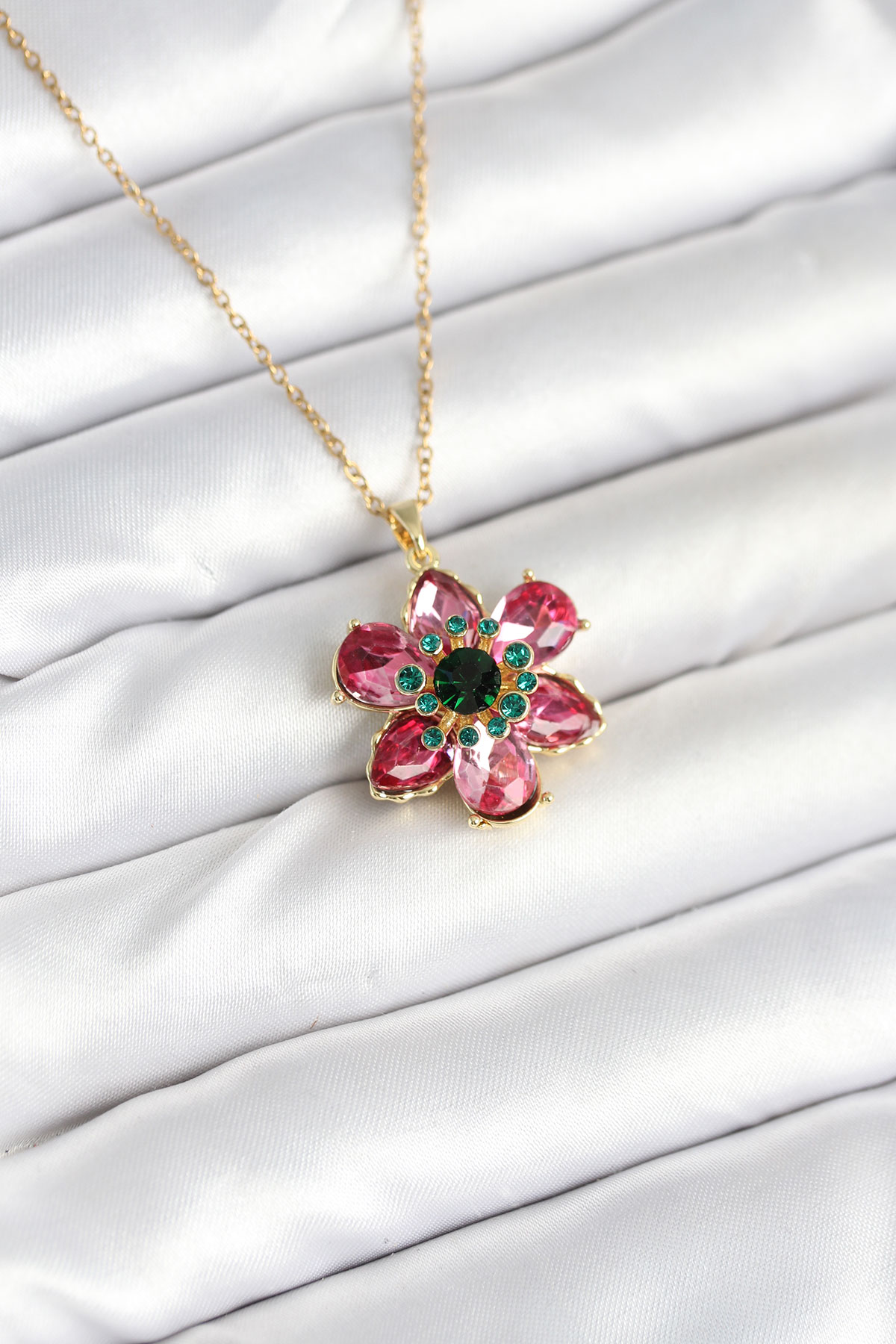 316L Çelik Zincirli Pembe Çiçek Model Kadın Kolye
