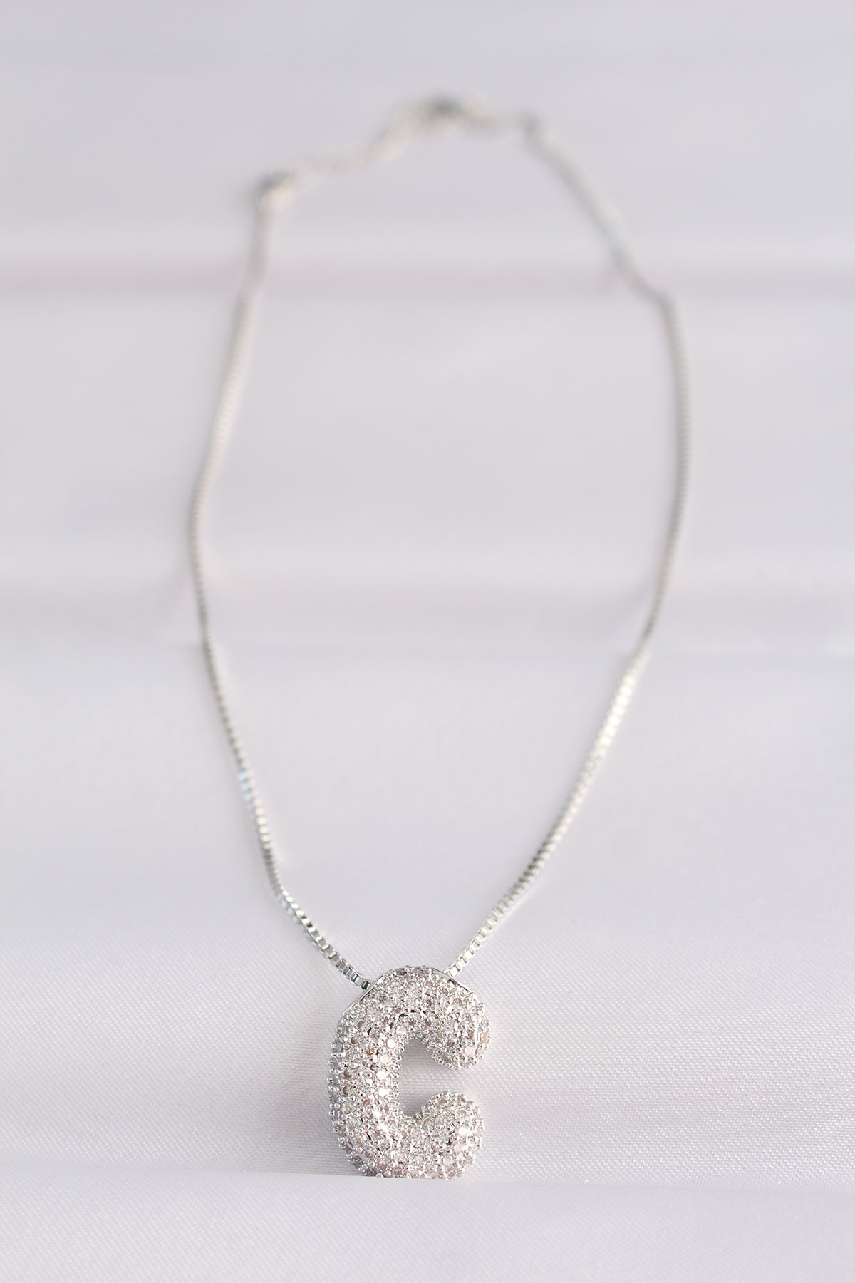 316L Çelik Zincirli Zirkon Taşlı C Harfli Silver Renk Bubble Kolye