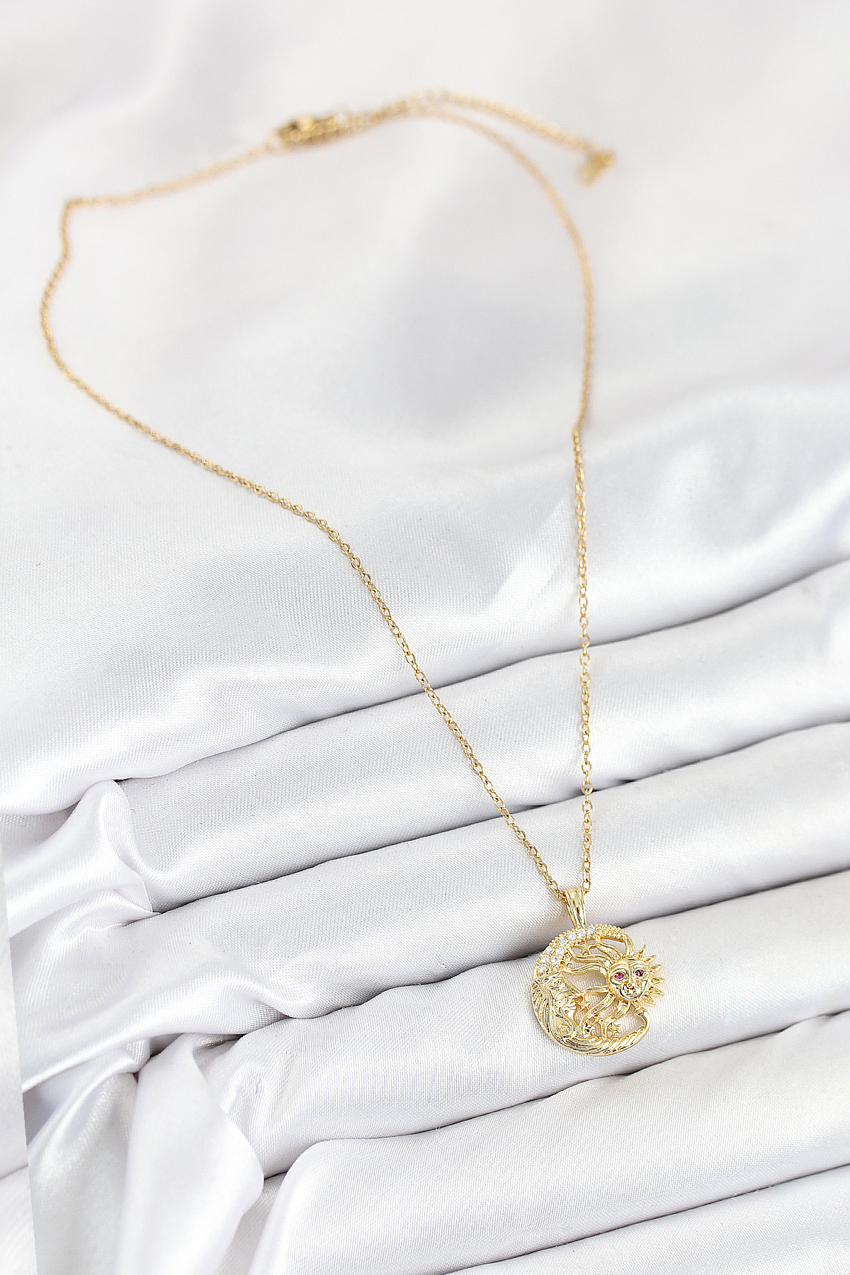 316L Çelik Zirkon Taşlı Ay Ve Güneş Model Gold Renk Kadın Kolye