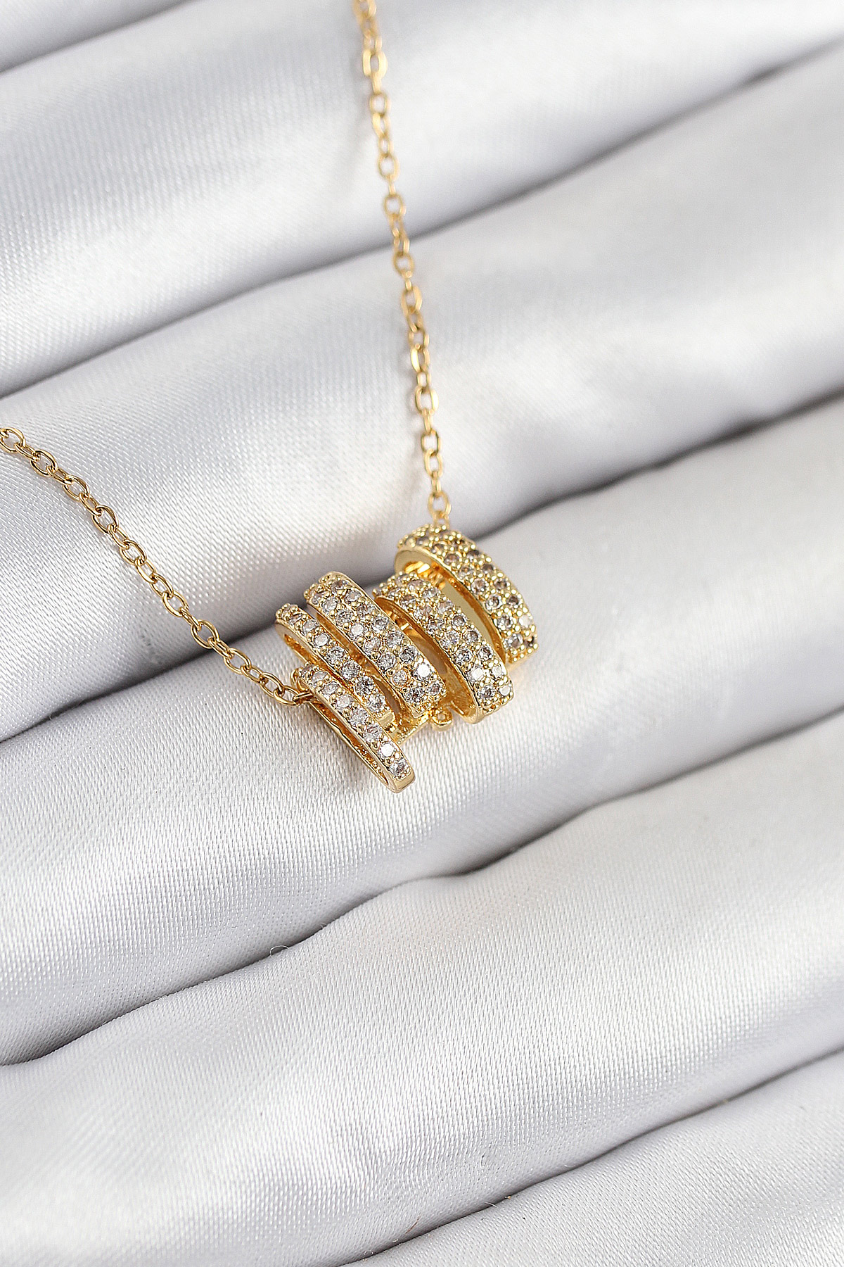 316L Çelik Zirkon Taşlı Sarmal Model Gold Renk Kadın Kolye