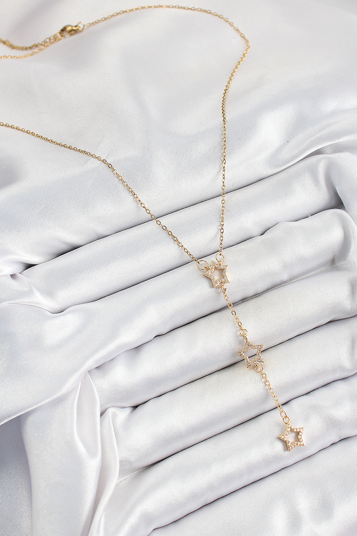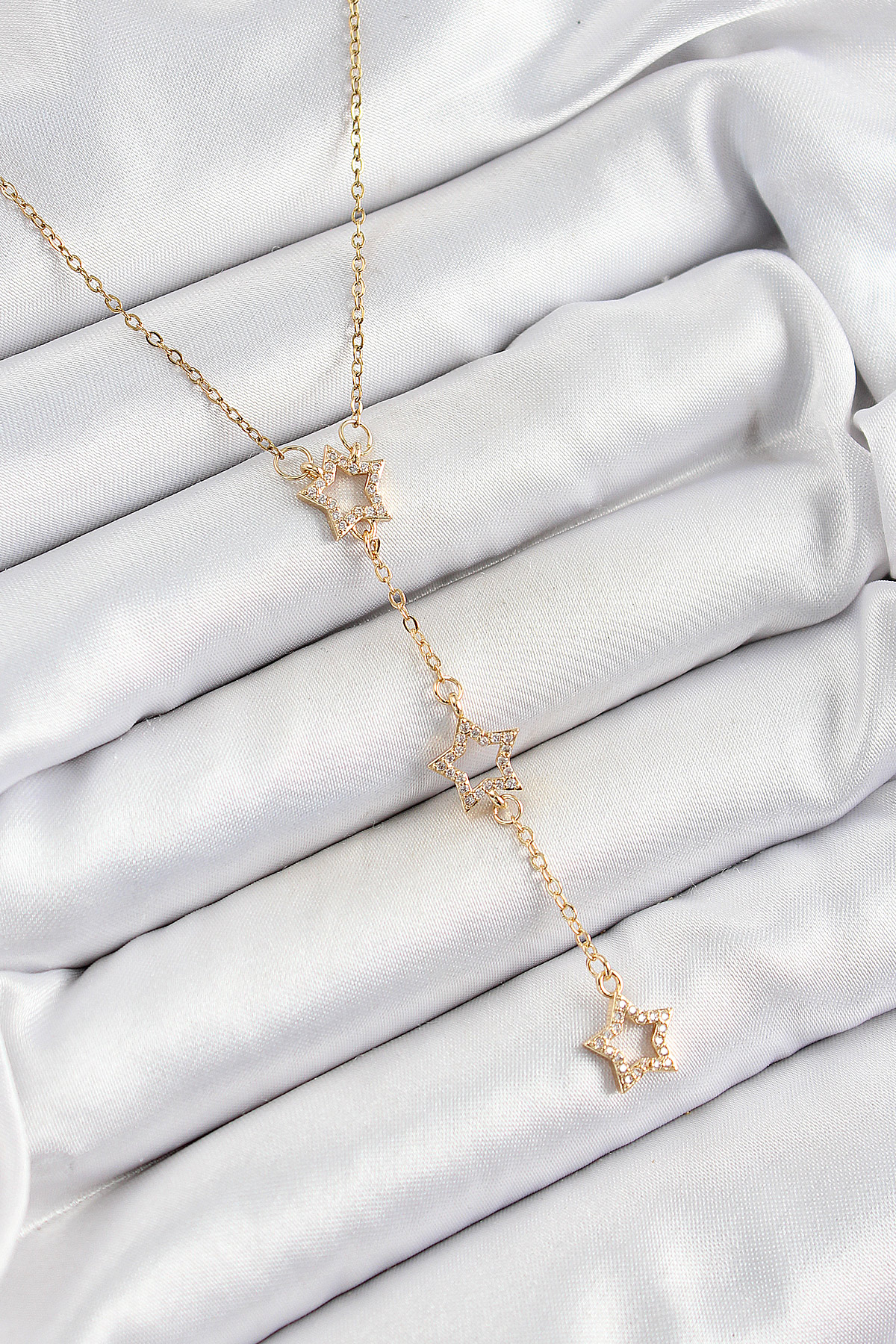 316L Çelik Zirkon Taşlı Yıldız Figürlü Y Model Gold Renk Kadın Kolye