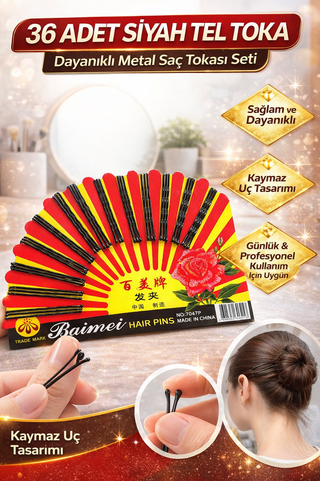 siyah tel toka, 36 adet tel toka, saç tokası seti, siyah saç tokası, metal tel toka, saç sabitleyici toka, topuz tokası, kuaför tel tokası, saç şekillendirme tokası, siyah saç teli toka, saç aksesuarı, tel toka seti, profesyonel saç tokası, kadın saç tokası