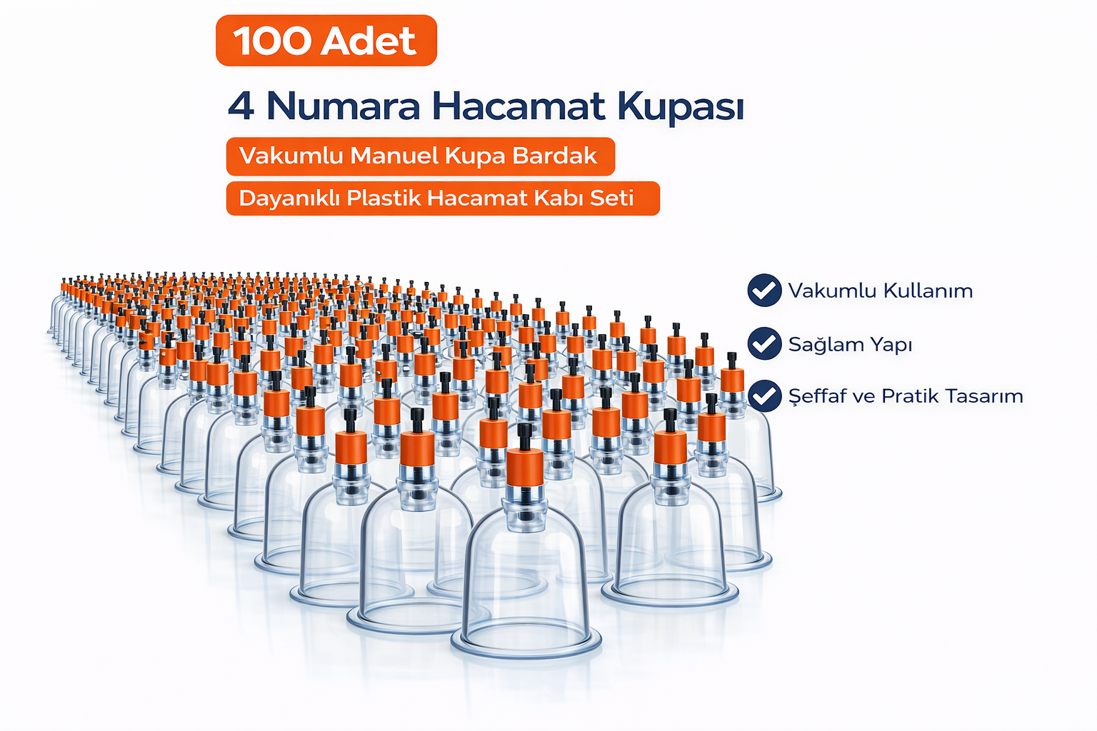 4 Numara Hacamat Kupası 100 Adet Vakumlu Manuel Kupa Bardak Dayanıklı Plastik Hacamat Kabı