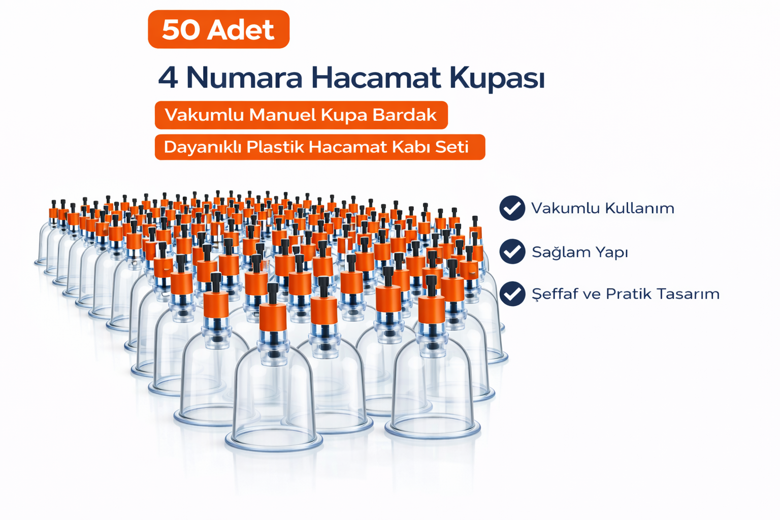4 Numara Hacamat Kupası 50 Adet Vakumlu Manuel Kupa Bardak Dayanıklı Plastik Hacamat Kabı