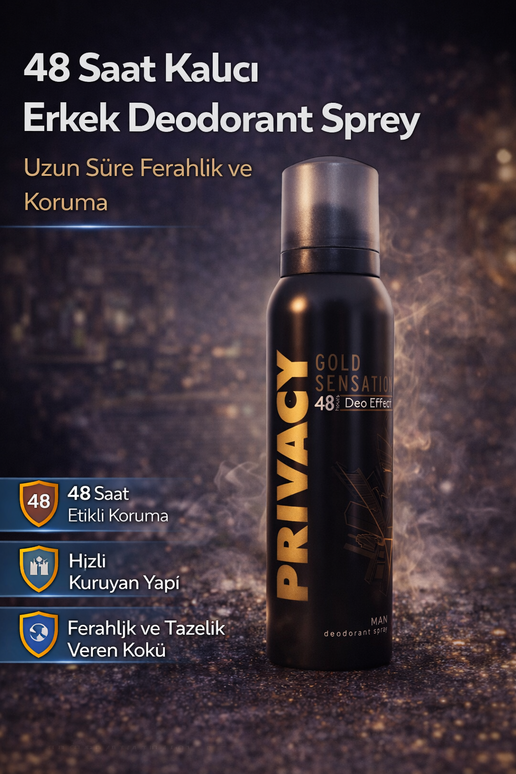 48 Saat Kalıcı Erkek Deodorant Sprey 150 ml Ferah Koku Ter Önleyici Uzun Süre Etkili