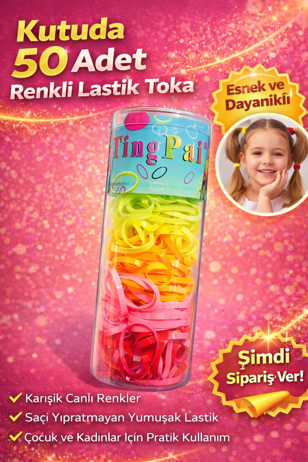 Renkli lastik toka seti, saç toplama ve saç şekillendirme için pratik ve kullanışlı bir saç aksesuarıdır. Kutu içerisinde bulunan 50 adet karışık renkli lastik toka sayesinde farklı saç modelleri kolayca yapılabilir.