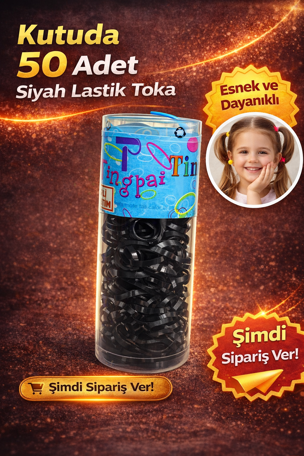 50 Adet Siyah Lastik Toka Seti Kutu İçinde Siyah Renkli Saç Lastiği Çocuk ve Kadın Saç Tokası