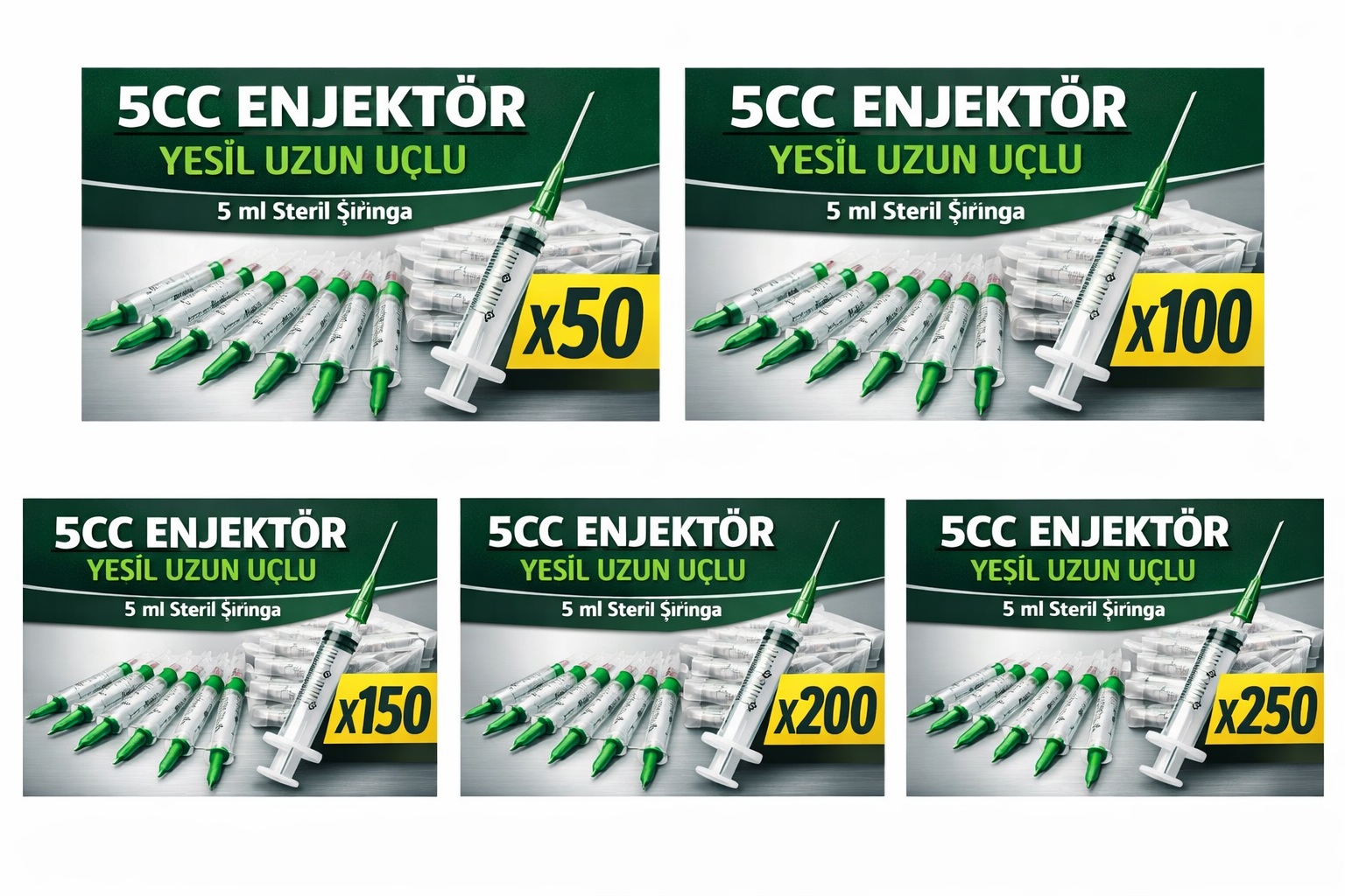 5cc enjektör yeşil uzun uçlu, 5 ml enjektör, yeşil uçlu enjektör, uzun uçlu şırınga, steril medikal şırınga, tek kullanımlık enjektör, hastane tipi enjektör, klinik enjektör, veteriner enjektör, laboratuvar şırıngası, 50 adet 5cc enjektör, 100 adet 5cc enjektör, 150 adet 5cc enjektör, 200 adet 5cc enjektör, 250 adet 5cc enjektör