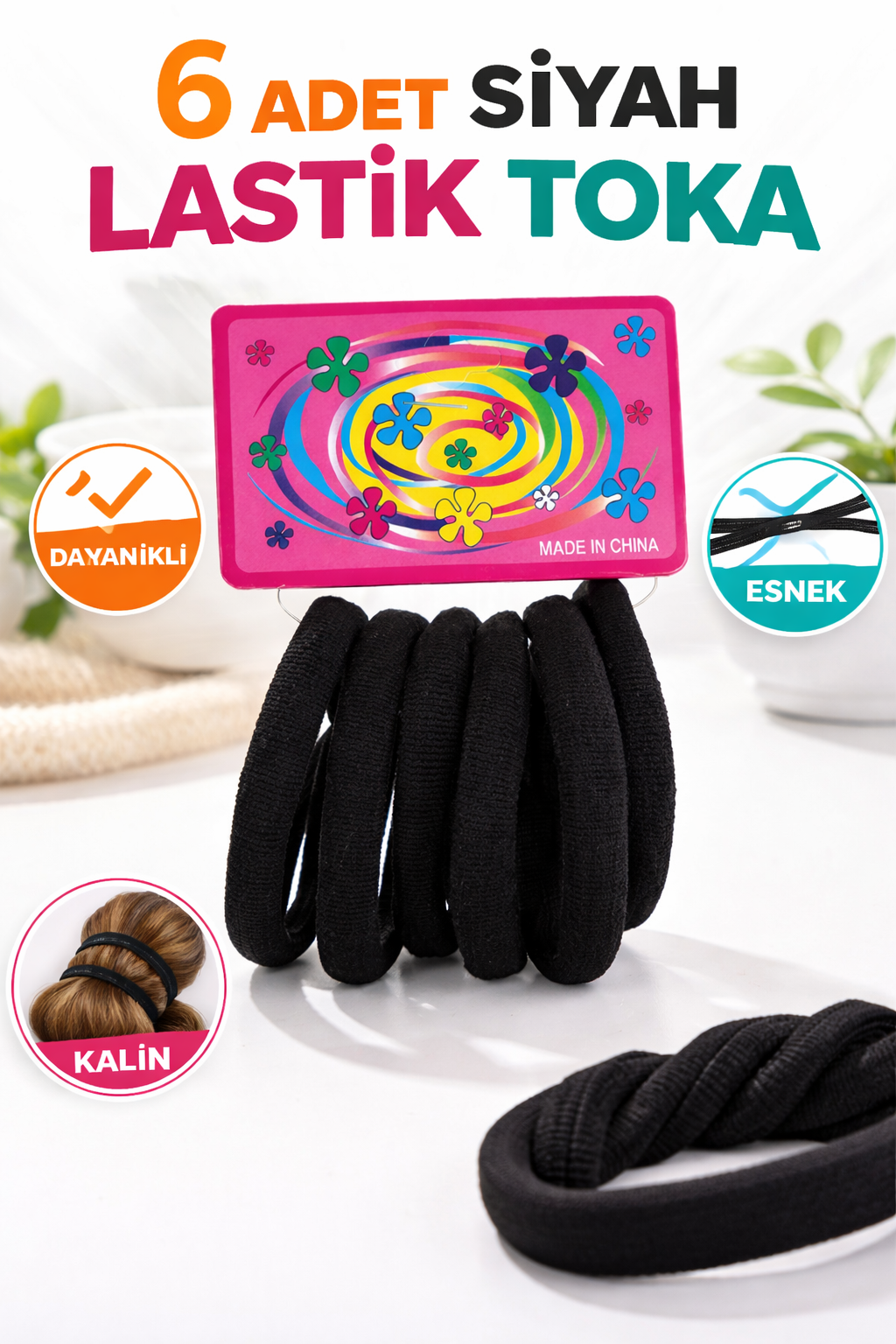 Paket içerisinde toplam 6 adet siyah lastik toka bulunmaktadır. Dayanıklı yapısı sayesinde uzun süre kullanılabilir ve çantada taşımak için pratik bir saç aksesuarıdır.
