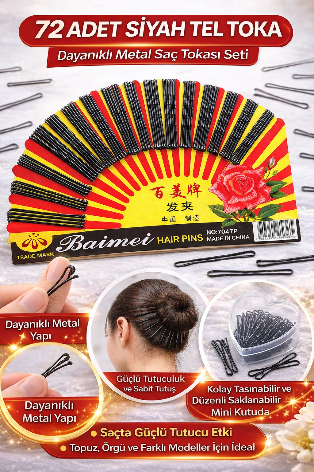 72 adet tel toka, siyah tel toka, saç tokası seti, siyah saç tokası, metal tel toka, saç sabitleyici toka, topuz tokası, kuaför tel tokası, saç şekillendirme tokası, siyah saç teli toka, tel toka seti, profesyonel saç tokası, kadın saç tokası, saç aksesuarı