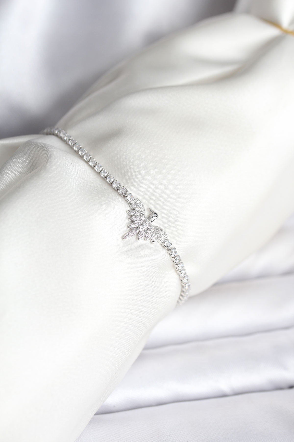 Anka Kuşu Model Zirkon Taşlı Gümüş Renk Pirinç Su Yolu Kadın Bileklik