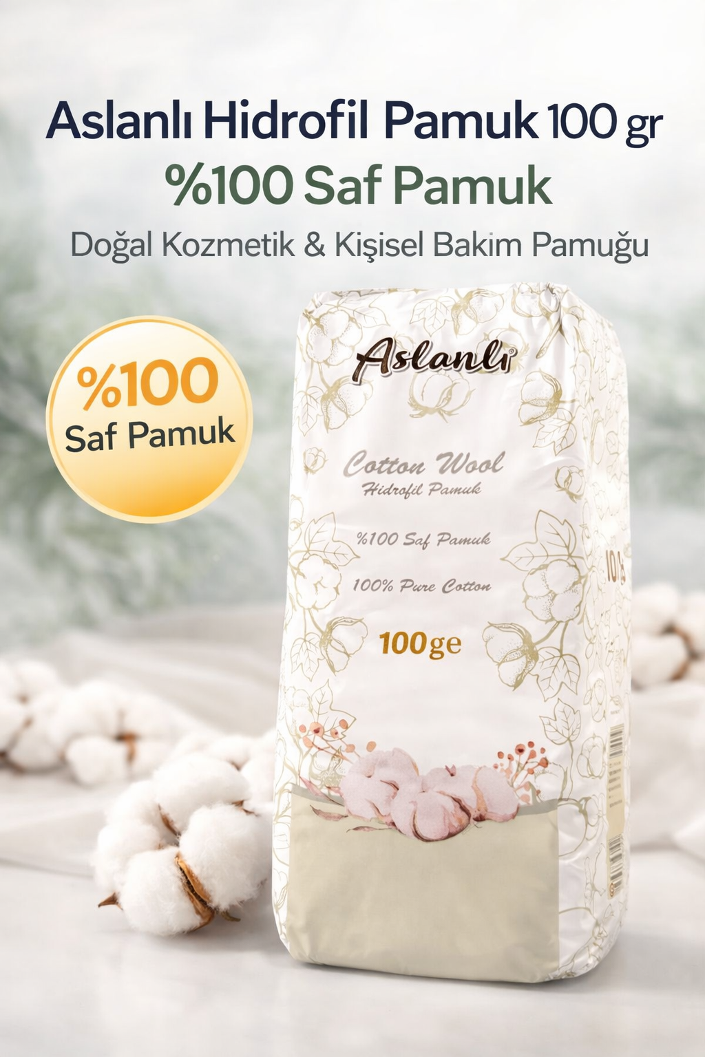 Aslanlı Hidrofil Pamuk 100 gr %100 Saf Pamuk Doğal Kozmetik ve Kişisel Bakım Temizlik Pamuğu 1 ADET