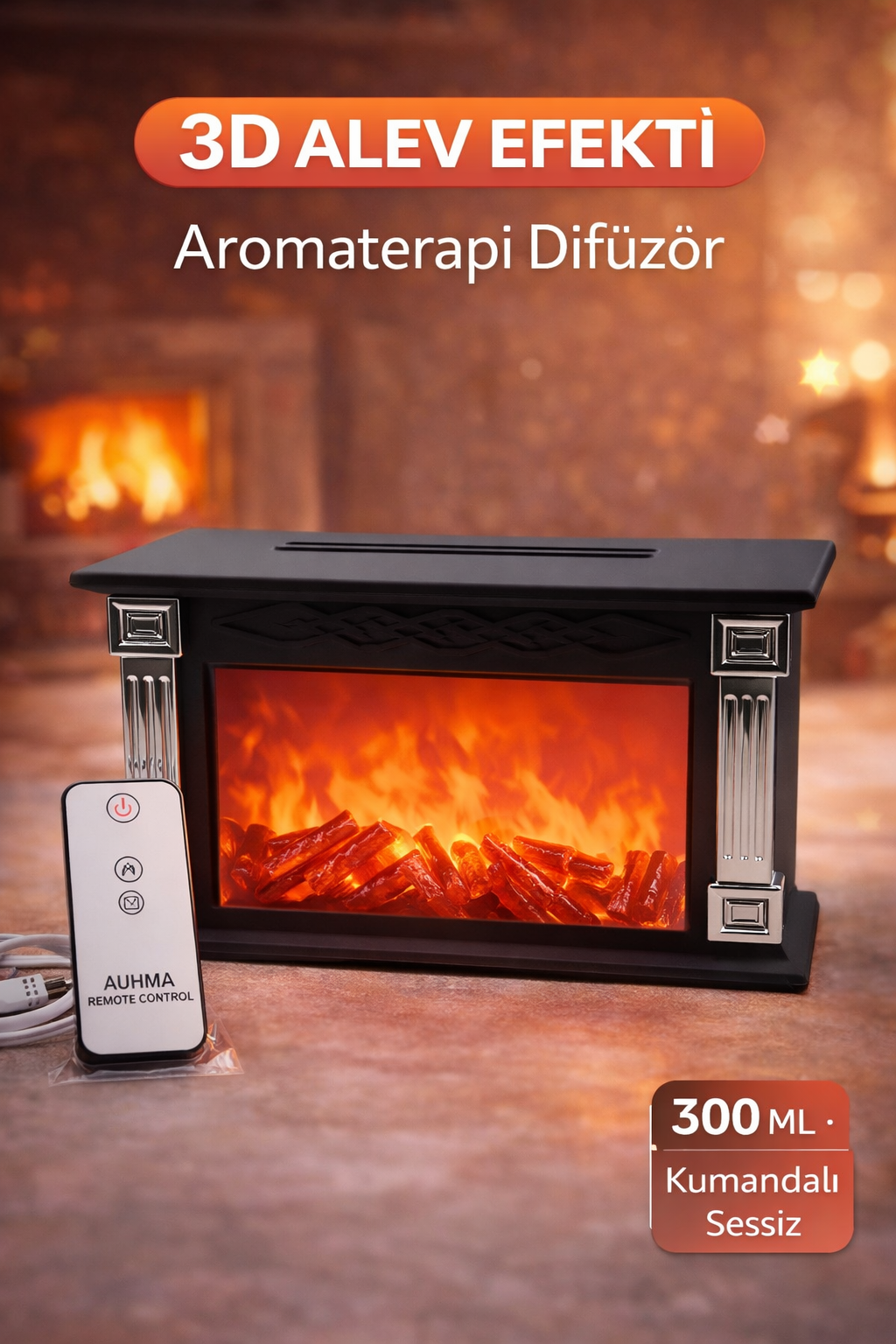 AUHMA Fireplace Aromaterapi Difüzör 300ML Ultrasonik Hava Nemlendirici Kumandalı 3D Alev Efektli Buhar Makinesi