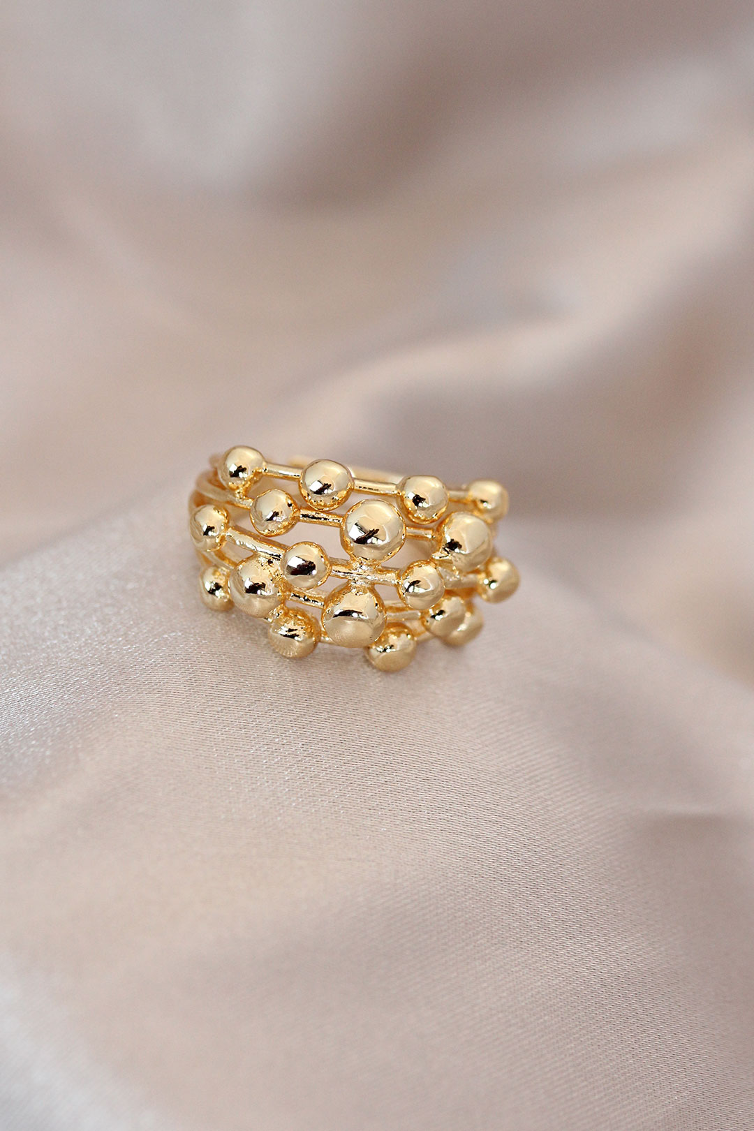 Ayarlamalı Gold Renk Metal Bombeli Boluncuk Model Yüzük