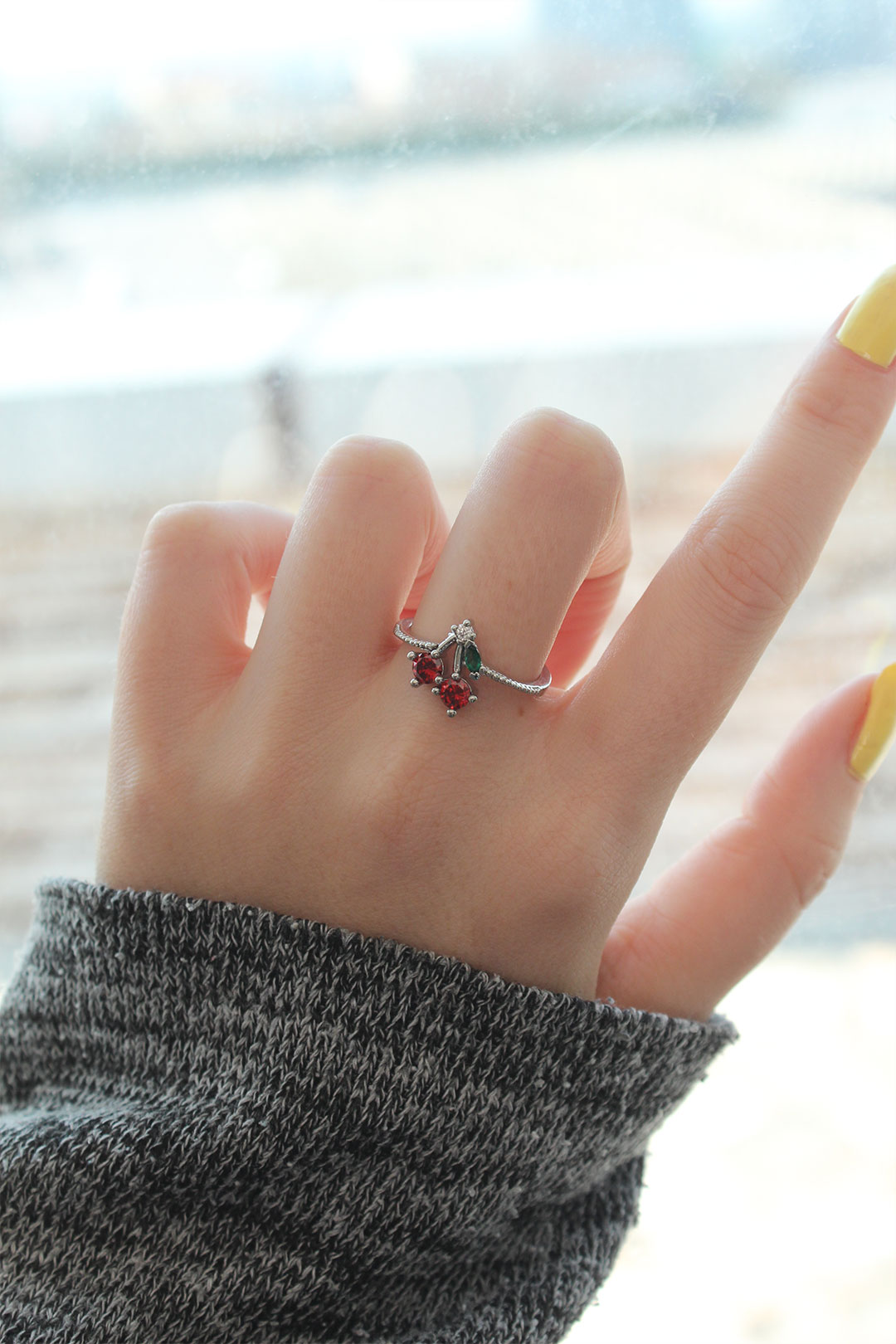 Ayarlamalı Gümüş Renk Kristal Taşlı Kiraz Yüzük