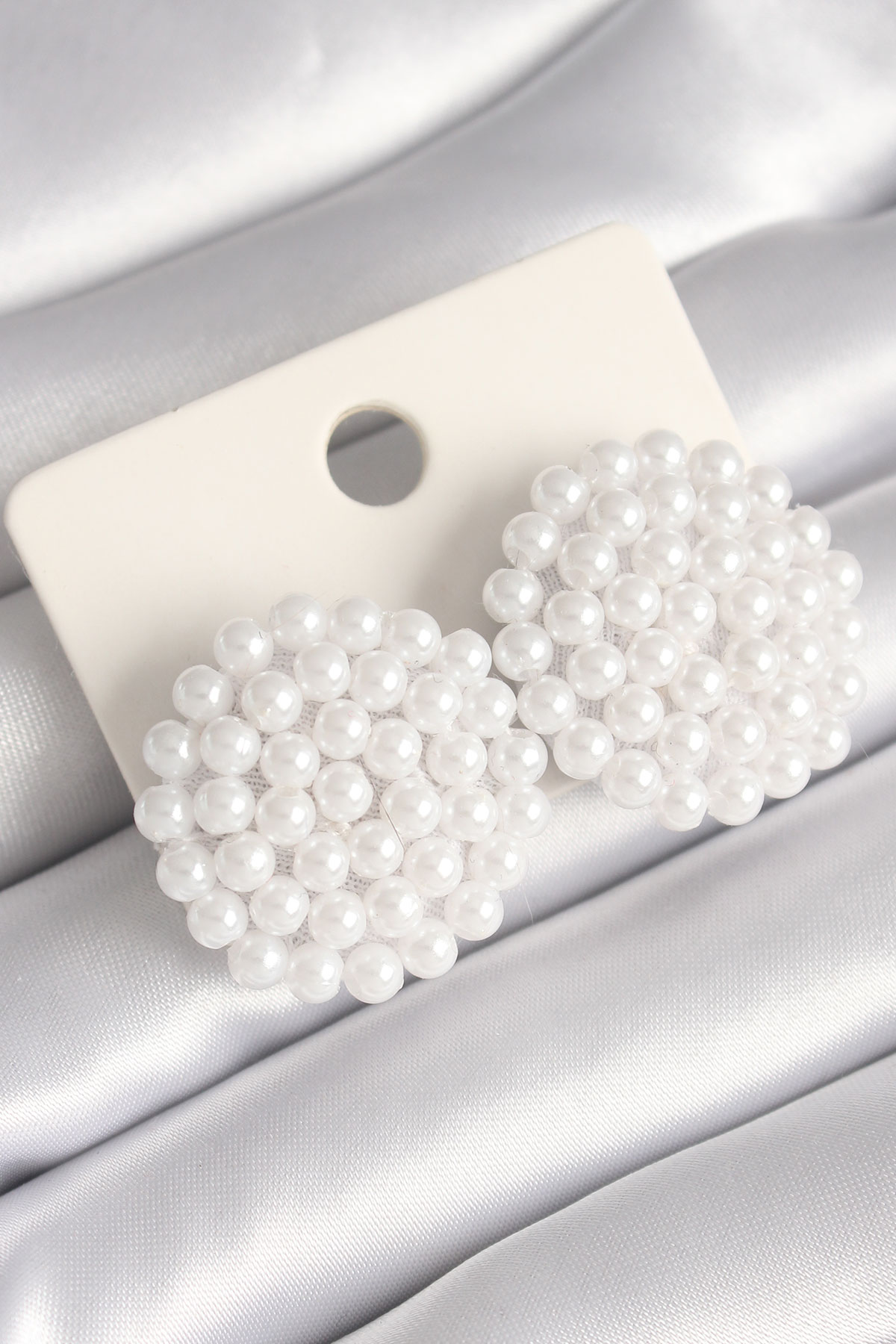 Beyaz Düğme Model Kristal Kadın Küpe