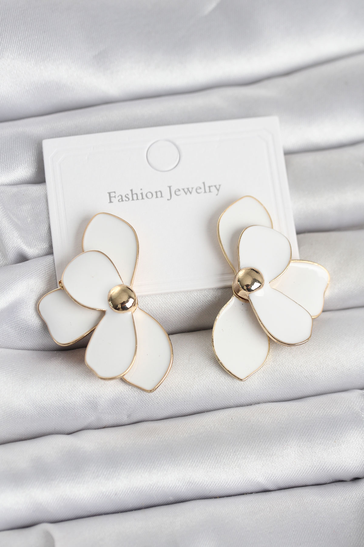 Beyaz Mineli Lotus Model Pirinç Kadın Küpe