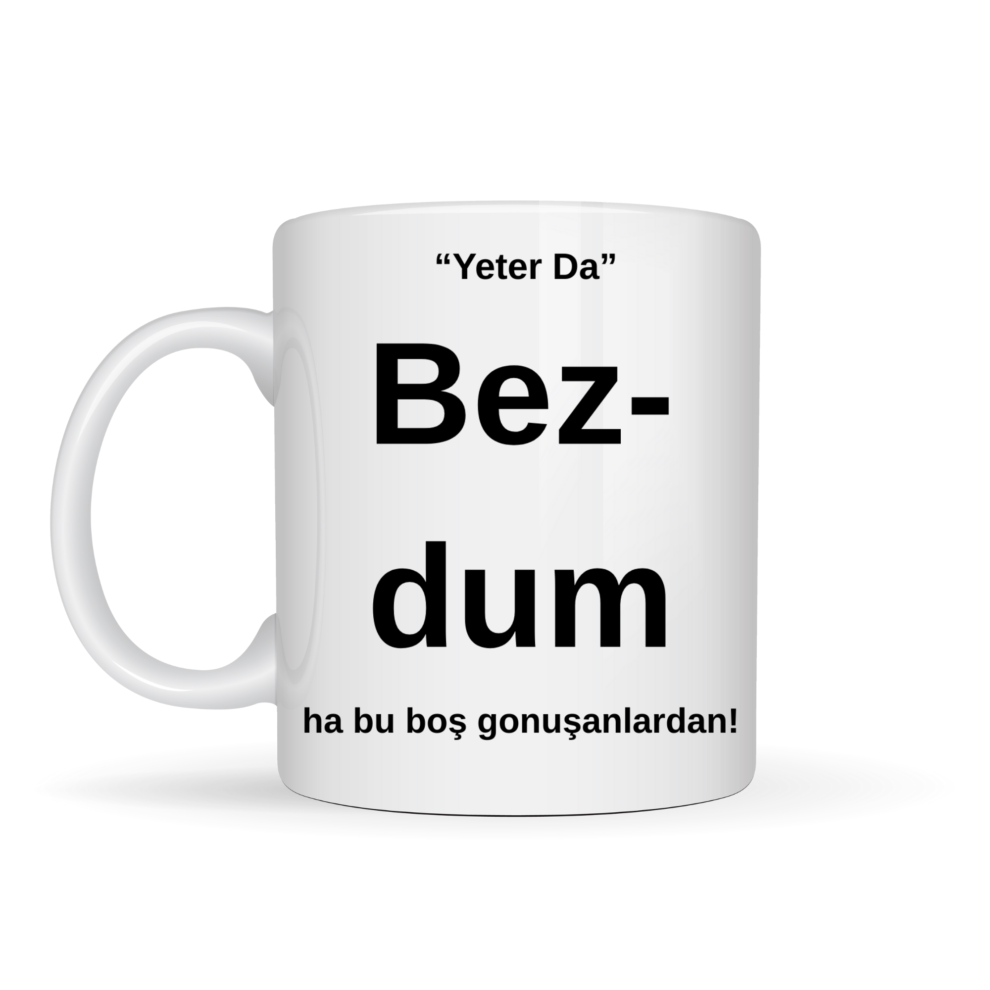 Bezdim Yazılı Tasarım Kupa Model 204 Komik Mesajlı Seramik Kupa Günlük Kullanım ve Hediye Seçeneği