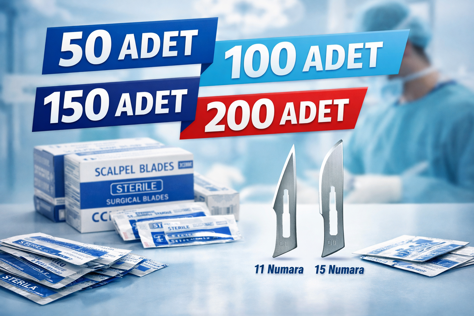 50 adet bistüri ucu, 100 adet bistüri ucu, 150 adet bistüri ucu ve 200 adet bistüri ucu varyasyonları mevcuttur.