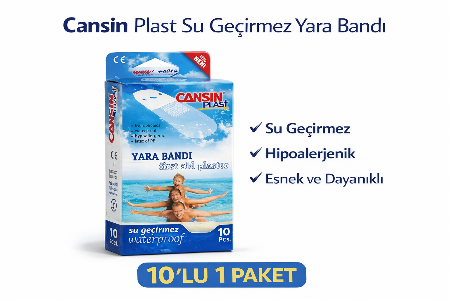 Cansın Plast Su Geçirmez Yara Bandı 10'lu 1 Paket Waterproof First Aid Plaster
