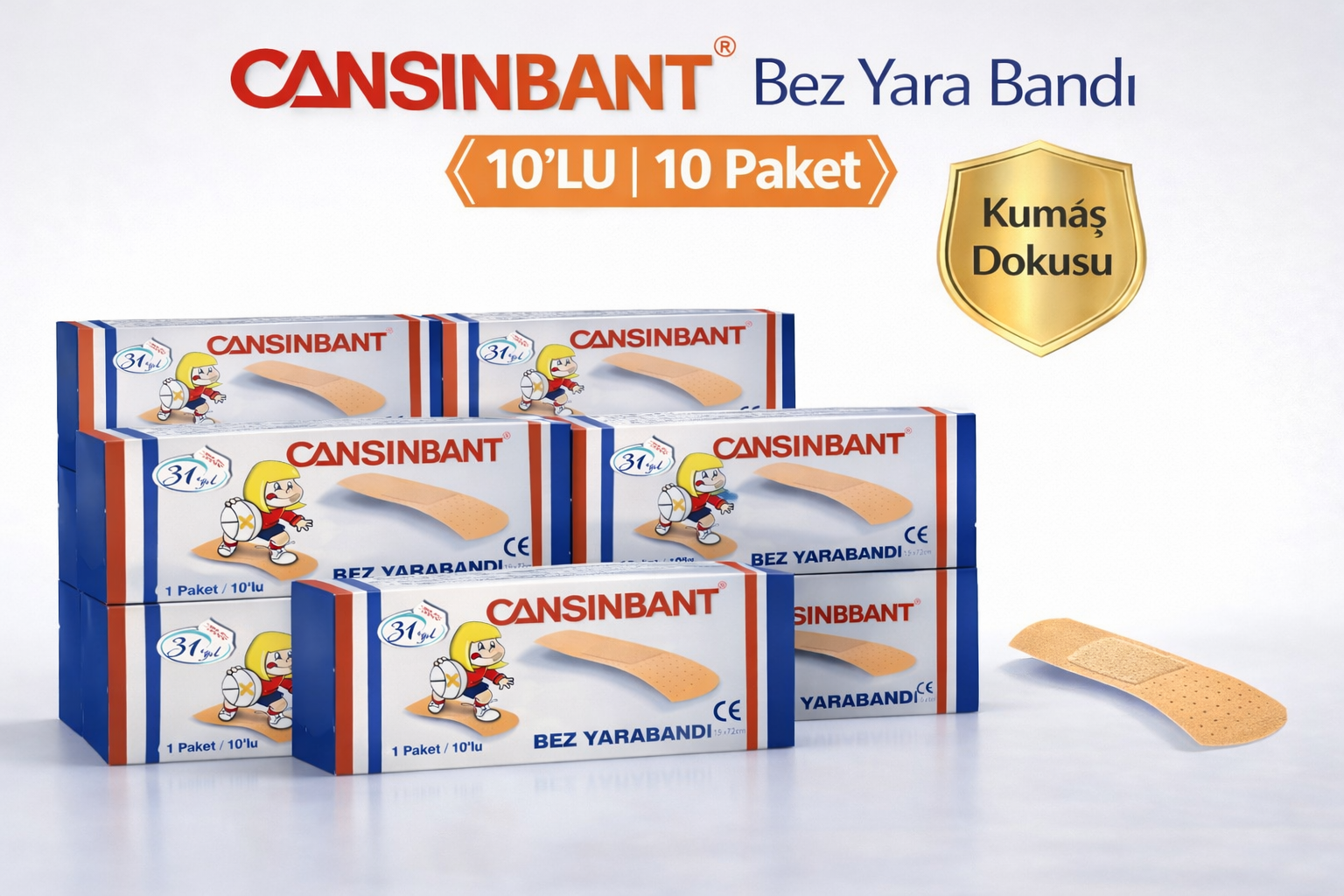 cansinbant bez yarabandı, bez yara bandı 10 adet, 1,9x7,2 yara bandı, fabric first aid plaster, küçük kesik yara bandı, hava alan yara bandı, ce belgeli yara bandı, ekonomik yara bandı 30 paket, toplu yara bandı seti, ilk yardım yara bandı, ecza dolabı yara bandı
