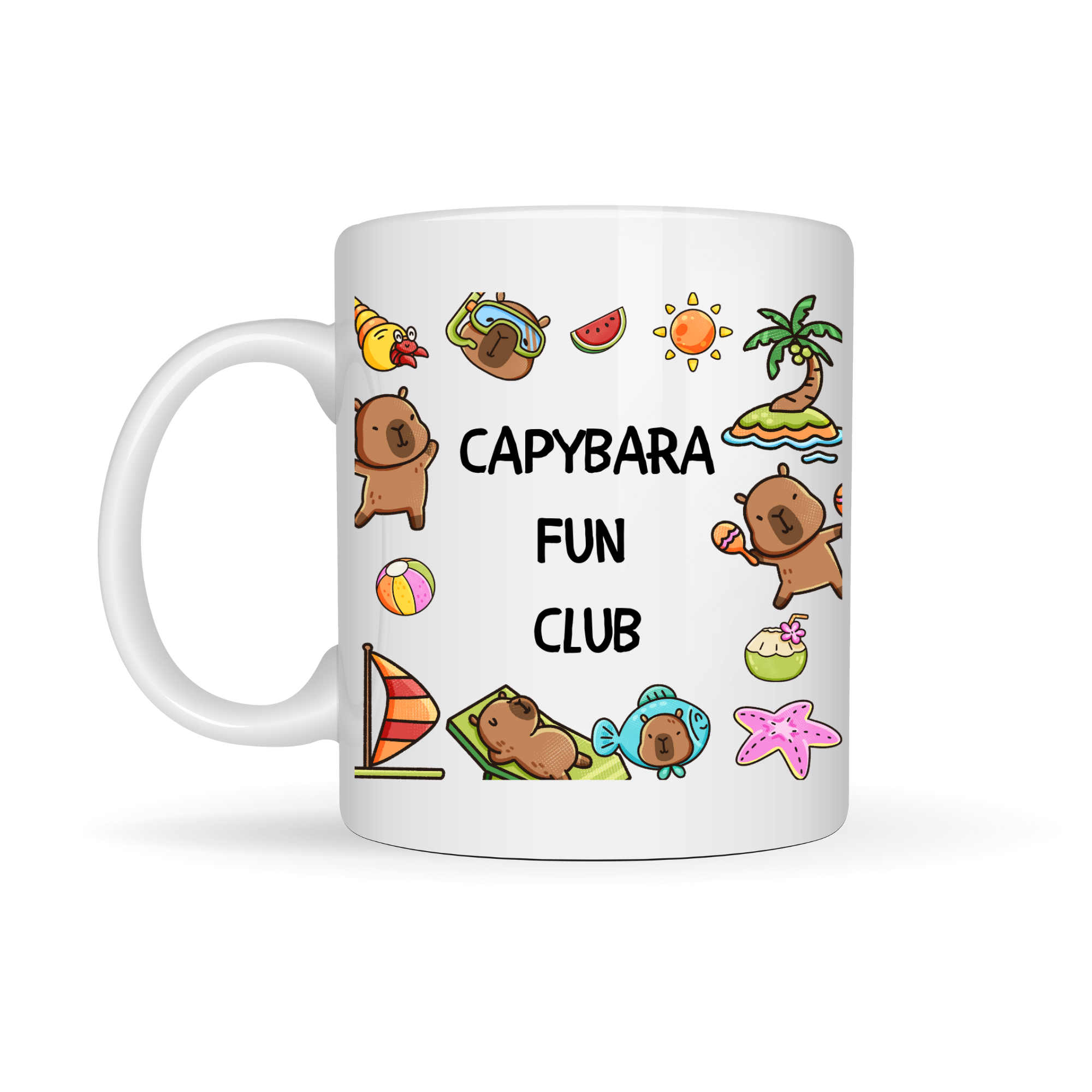 Capybara Fun Club yazılı eğlenceli kupa ile enerjinizi yansıtın. Model 237 baskılı seramik kupa hediye ve günlük kullanım için idealdir.